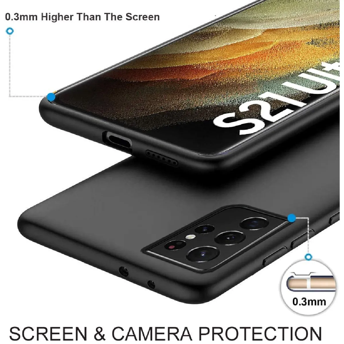 Coque Silicone TPU Noir + 2 Verres Trempes Pour Samsung Galaxy S21 Ultra 5G Little Boutik®