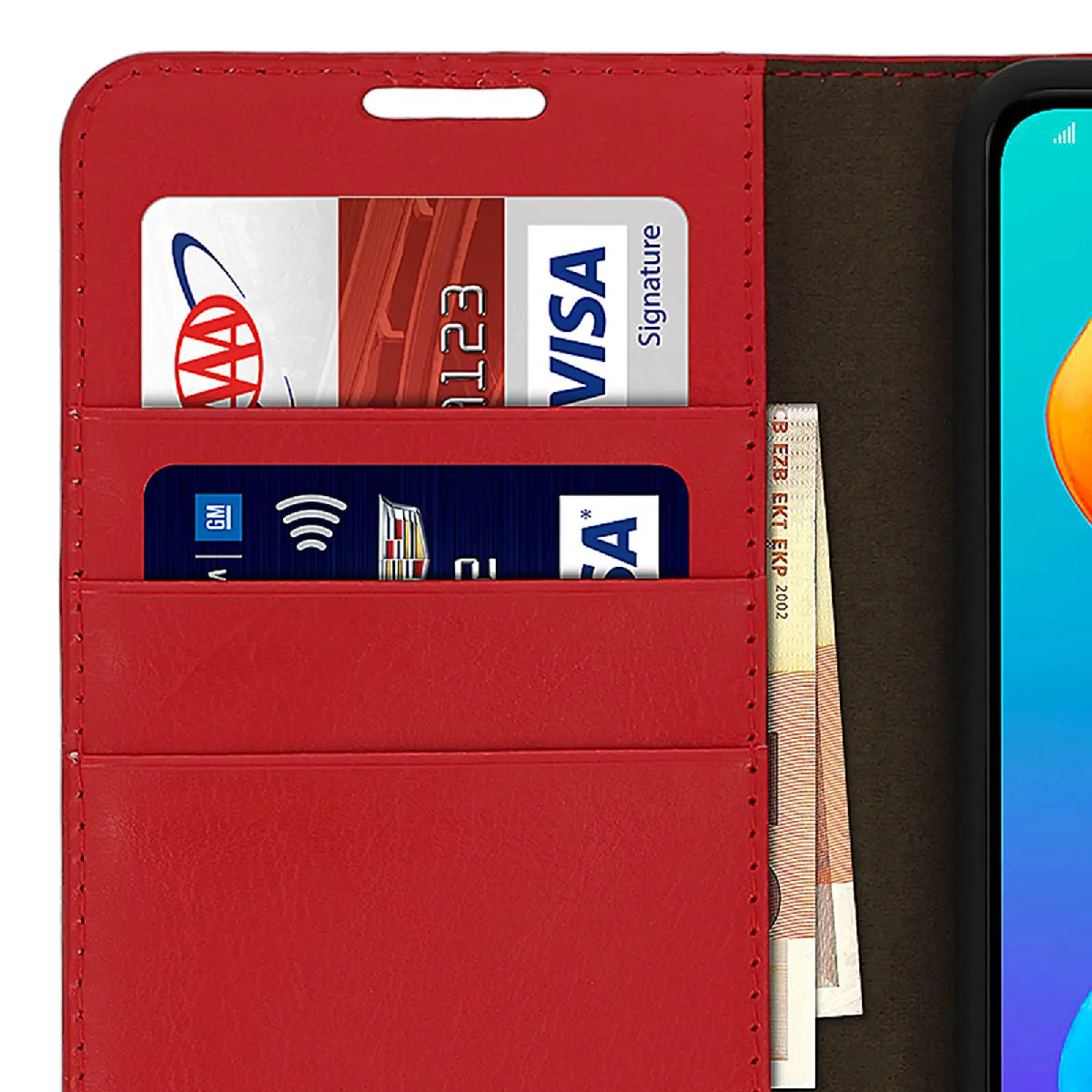 Housse cuir véritable - Protection intégrale avec support vidéo - Compartiments pour cartes et billets