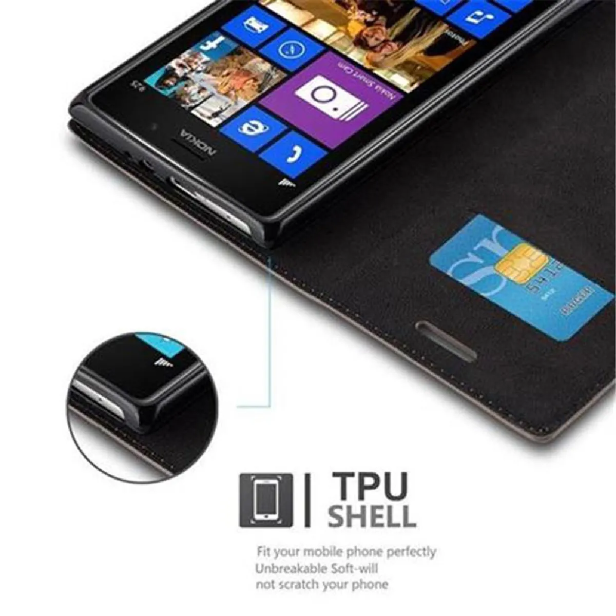 DESIGN: Étui pour téléphone portable ultra fin de style Book avec compartiment pour carte, fonction stand, étui en silicone TPU intégré et une fermeture magnétique sans languette gênante.