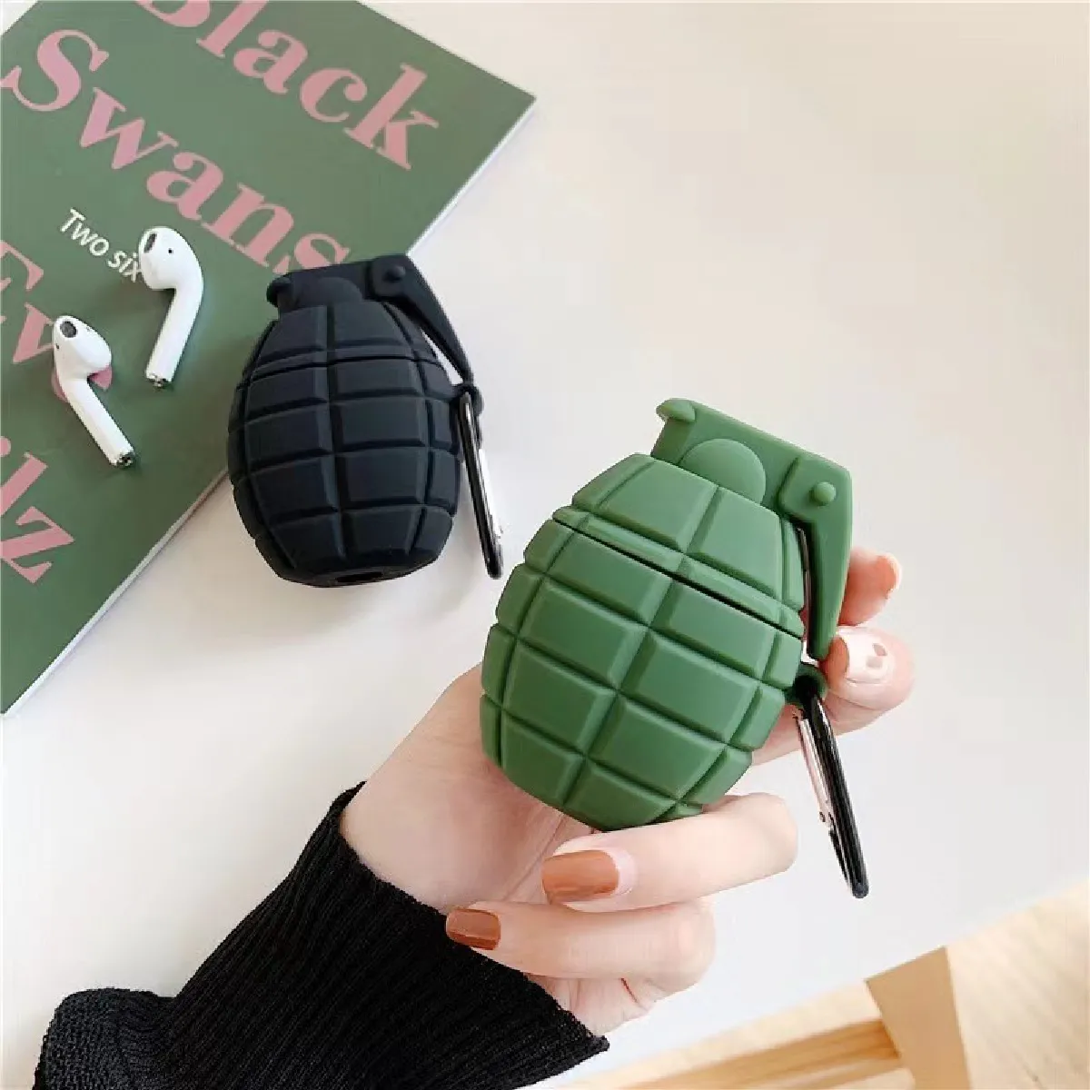Housse étui AirPods - silicone souple - protection antichoc - design grenade