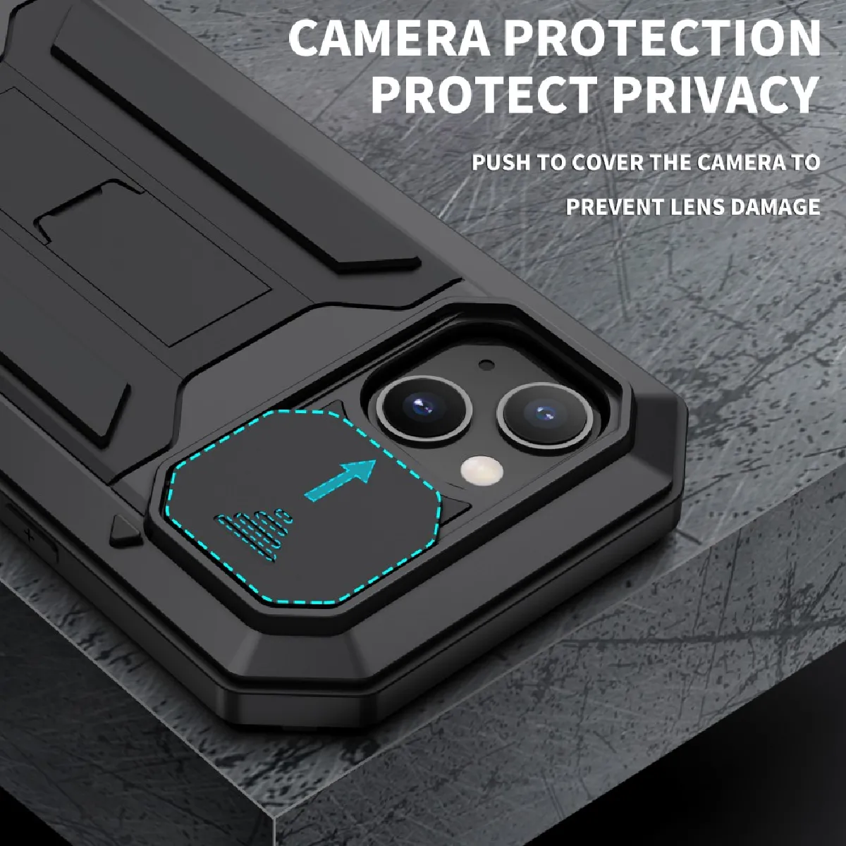 Construit avec du plastique, du silicone, du verre trempé et du métal, durable pour une utilisation à long terme. Doté d'une fonction antichoc, étanche à l'eau et à la poussière, excellente protection. Conception de béquille cachée pour une visualisation mains libres. Le protecteur d'écran en verre trempé intégré aide à prévenir les rayures et les fissures sur votre téléphone. Prend en charge le chargement sans fil sans retirer la coque du téléphone. Le couvercle de la caméra à glissière offre une meilleure protection pour la caméra. Beau travail et bon sentiment de main. Protection complète complète