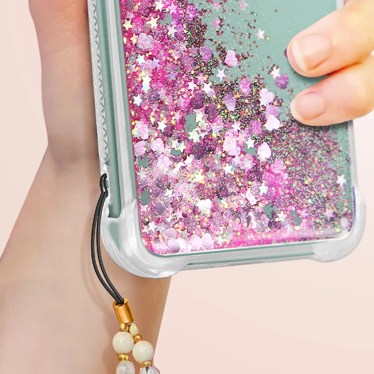 Des jolies paillettes scintillantes en forme de cur flottent librement et sans danger à l'intérieur de la coque
