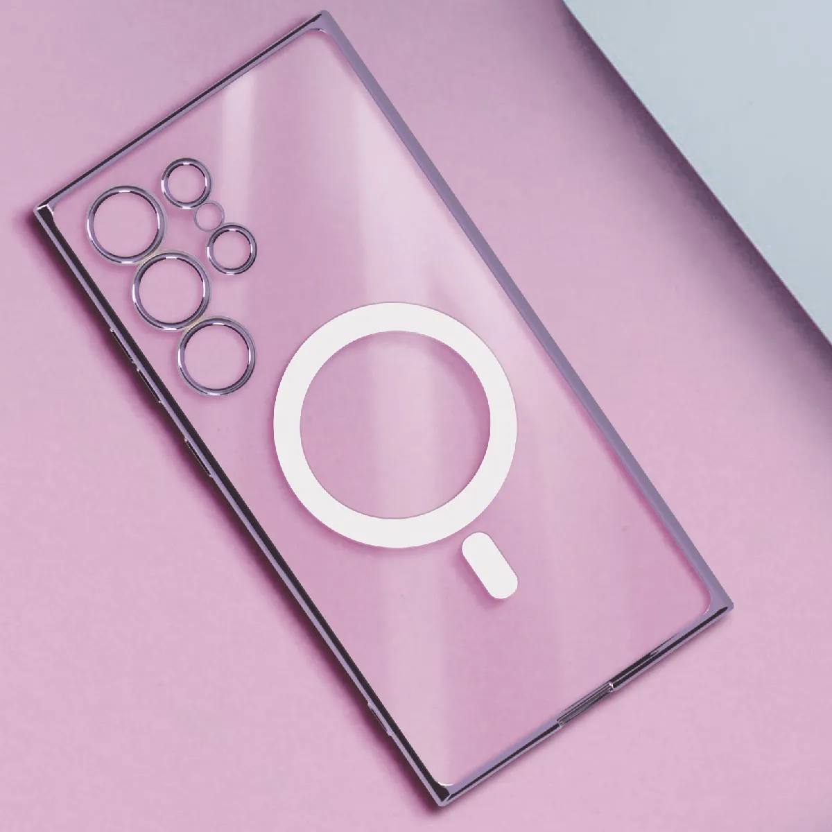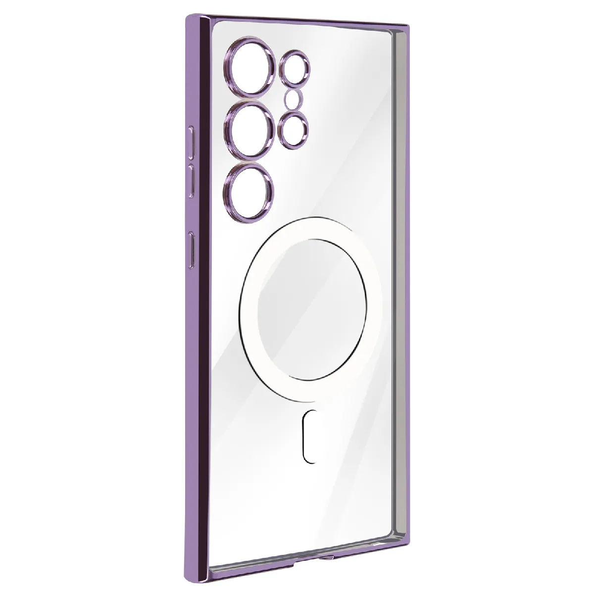 Coque pour Samsung Galaxy S24 Ultra. Compatibilité MagSafe. Matériaux en silicone premium transparent anti-rayures. Éclat métallique brillant. Découpes précises avec connectiques accessibles. Protection surélevée. Boutons sensibles.