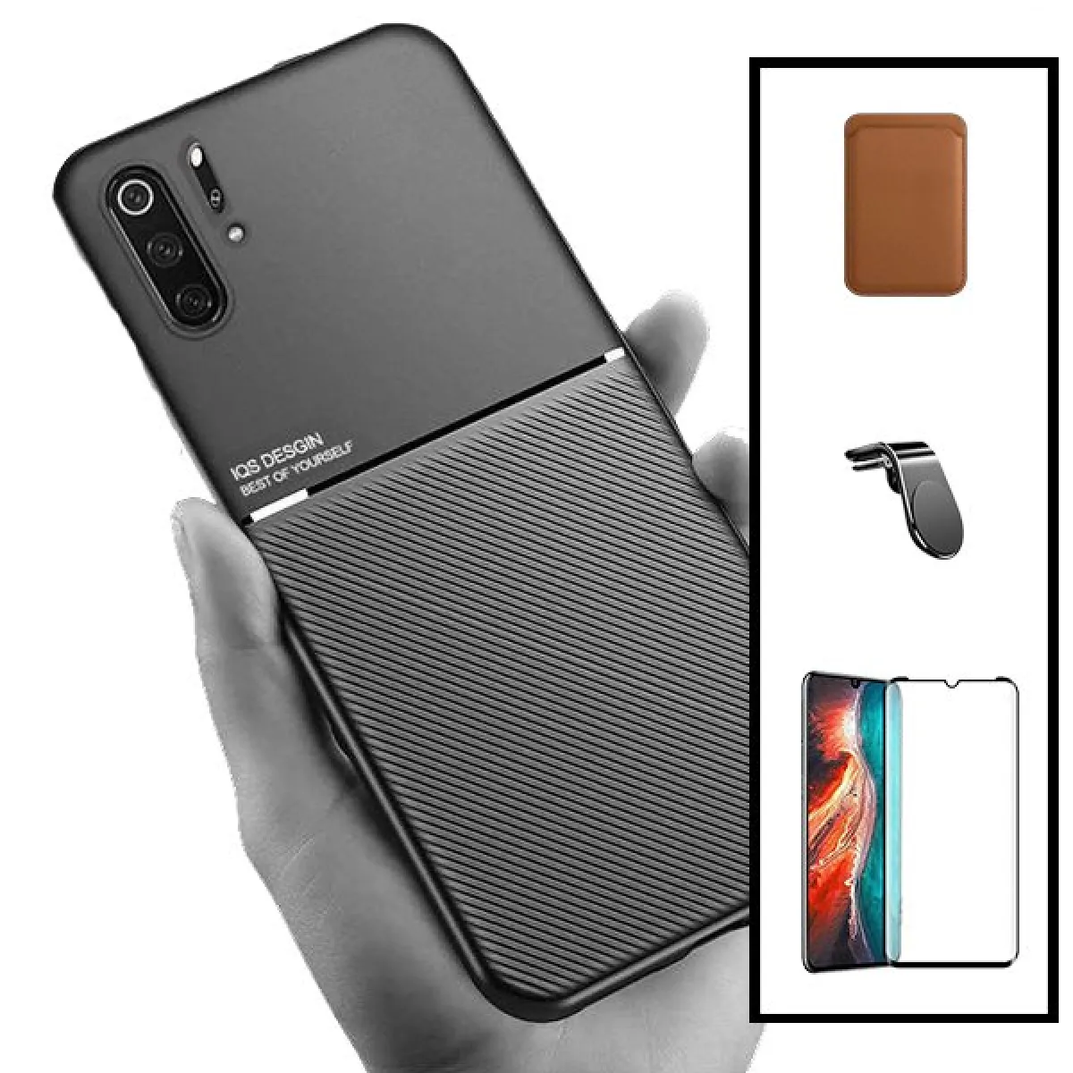 Commentaire vendeur : Kit Étui Magnétique Lux + Portefeuille Magnétique Marron + Verre Trempé de la Étui Complète 5D + SuppOrt Magnétique L pour Huawei P30 Pro New Edition