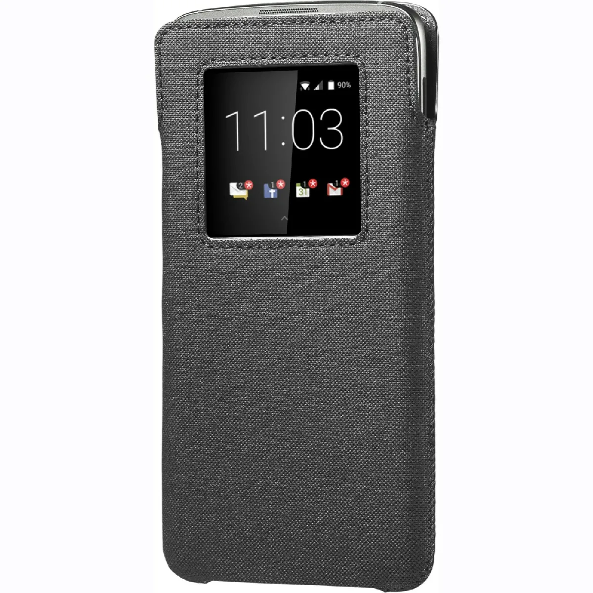 BlackBerry ACC-63068-001. Type d'étui: Support, Compatibilité de marque: BlackBerry, Compatibilité: BlackBerry DTEK60, Taille maximum d'écran compatible: 14 cm (5.5'), Coloration de surface: Uniforme, Couleur du produit: Noir La housse à rabat BlackBerry® DTEK60 protège élégamment votre smartphone et offre une bonne prise en main, tout en résistant à l'épreuve du temps. Conçu pour tous ceux qui apprécient à la fois esthétique et fonctionnalité, il est doté d'une ouverture qui vous permet de consulter facilement vos notifications. Vous avez également la possibilité de passer vos appels avec l'étui : soyez ainsi certain de ne manquer aucun message ni échange important. - Ouverture optimisée pour la consultation de l'heure, de la date et des notifications - Compatible NFC - Accès au port USB - Appels possibles avec l'étui