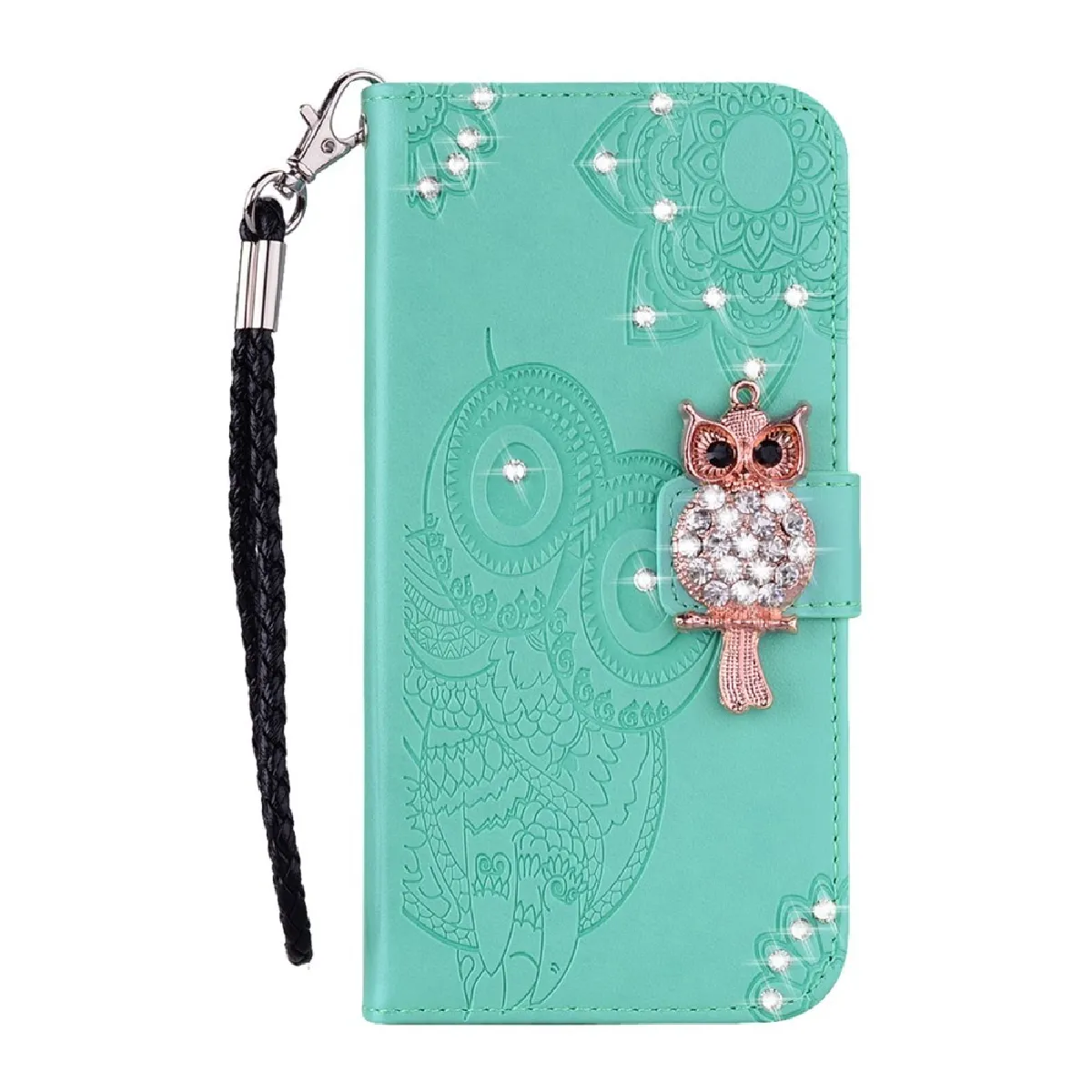 Etui portefeuille en PU - Décor strass hibou - Support intégré - Compatible Galaxy A21s