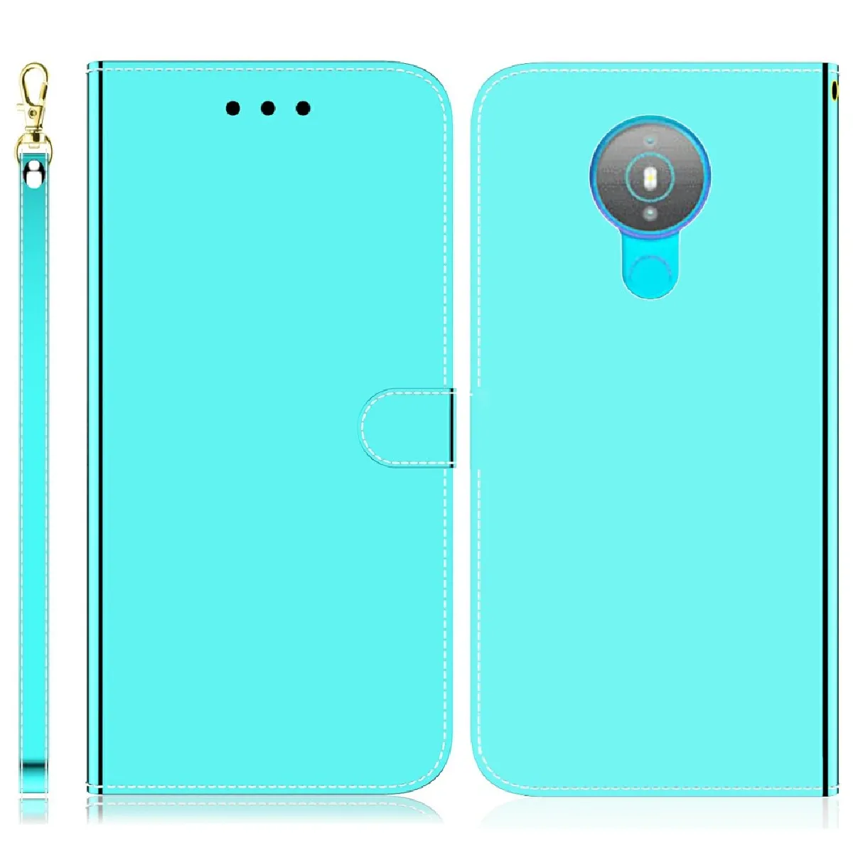 Étui portefeuille - Surface miroir - Matériaux PU et TPU - Support pliable - Avec sangle