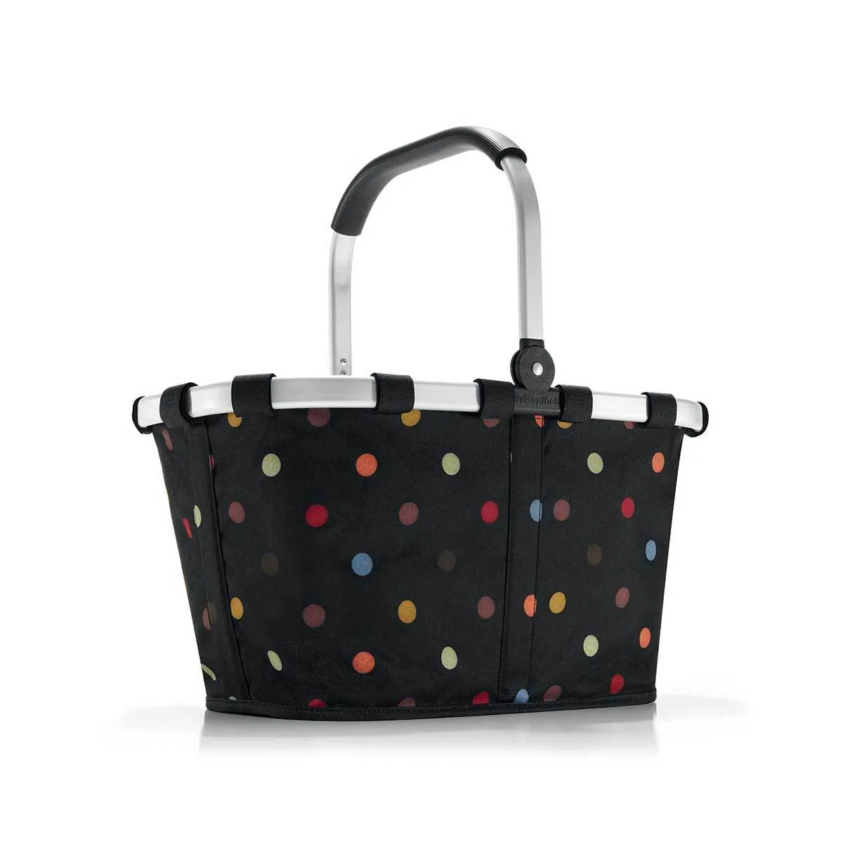 Idéal pour transporter les achats du quotidien, ce panier léger offre une capacité de 22 l avec un volume stable. Sa structure en aluminium robuste assure une bonne tenue tout en restant maniable. Le format rectangulaire de 48 x 28 x 29 cm accueille facilement fruits, bocaux et produits d'entretien sans se déformer. La teinte noire à pois s'intègre discrètement à différents usages, du marché au coffre de la voiture, avec une prise en main simple et confortable pour des trajets courts ou prolongés.