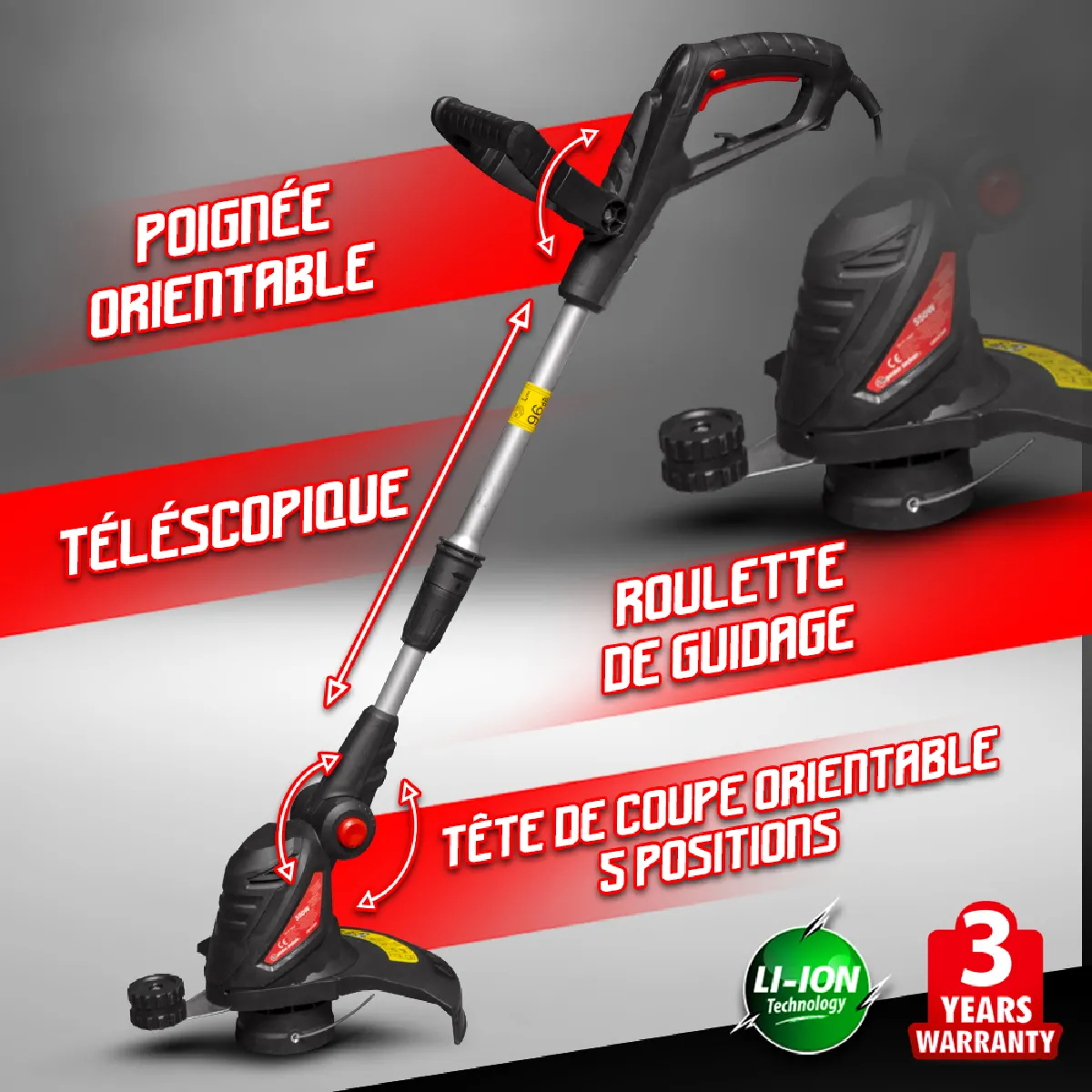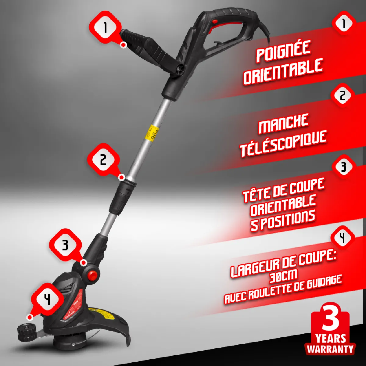 Coupe bordures électrique 550W - Largeur de coupe 30 cm - Manche télescopique