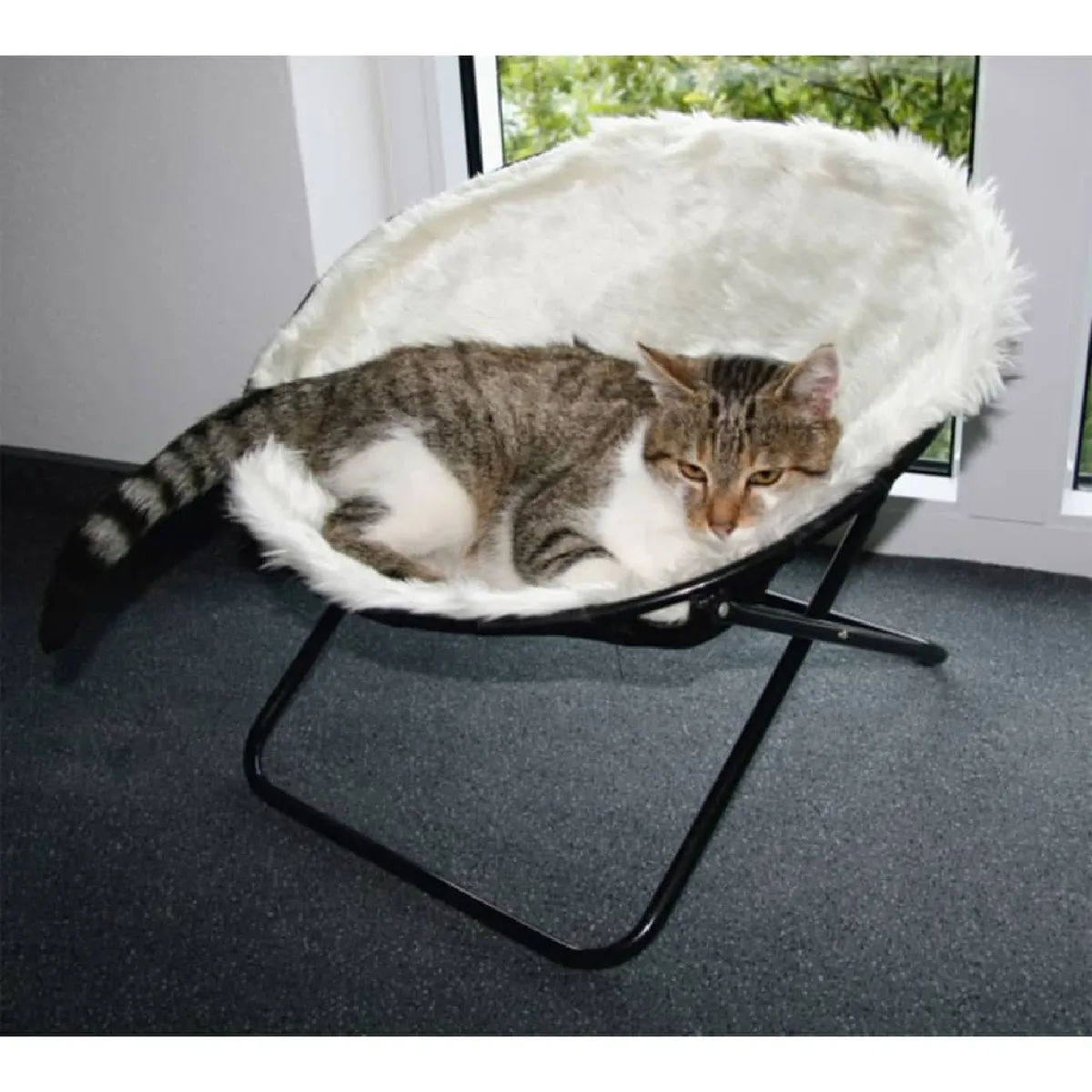 Ce nid pour chat a la forme d'une chaise et dispose d'une couverture 100% polyester avec une surface en peluche blanche qui sera très confortable et chaude pour votre petit ami félin.
