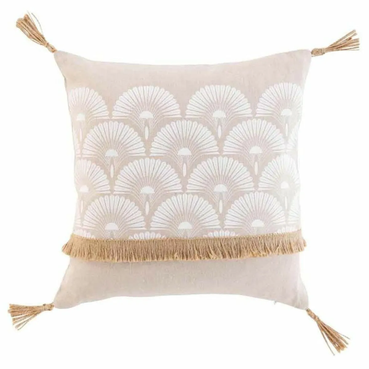 Coussin déco - Coton - 40 x 40 cm - Déhoussable - Forme carrée - Pompons
