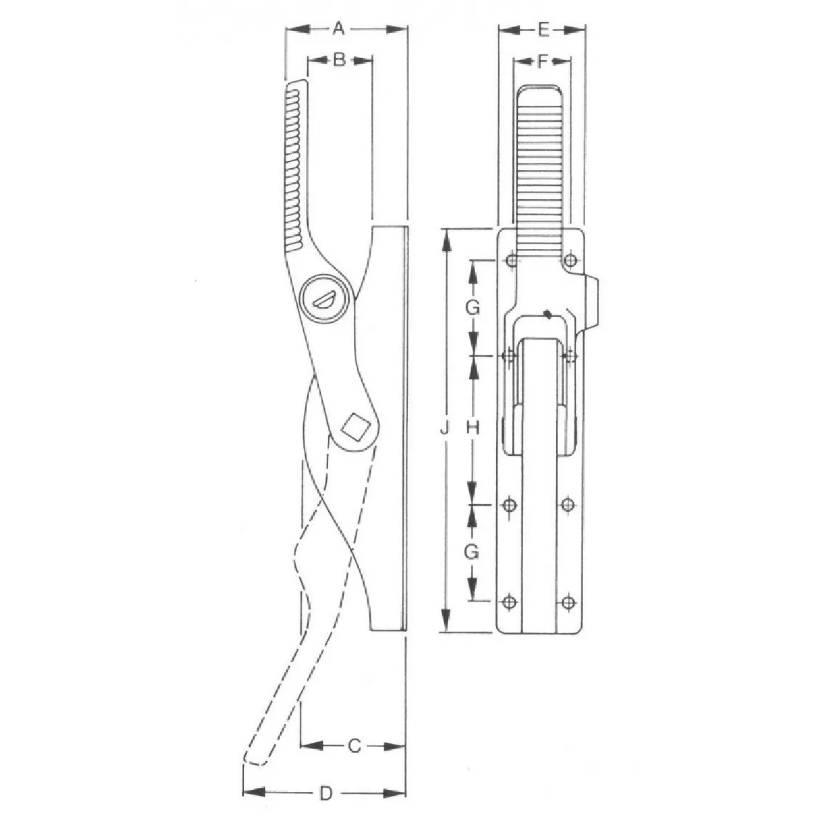 Crémone en applique pour porte - Manœuvre à levier - Acier zingué - Avec serrure à clef - Réversible - Livrée sans tringle