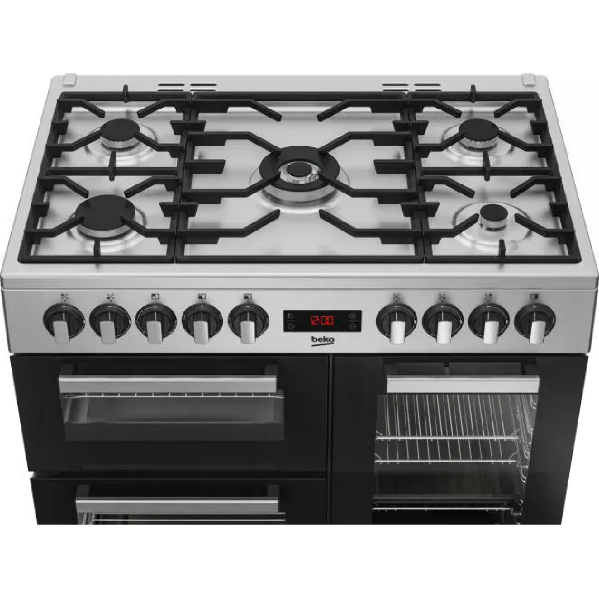 Piano de cuisson gaz 5 foyers et 3 fours, finition inox