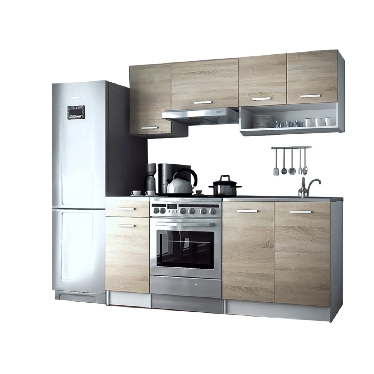 Commentaire vendeur : Gamme de meubles de cuisine Vika : finitions soignées, matériaux de qualité, fonctionnalité et design réunies. Tout inclus. Tout simplement.Les éléments sont individuels et peuvent être disposés de différentes manières.Autres couleurs ou packs peuvent être achetés dans , vous pouvez toutes les retrouver en indiquant 'cuisine infinity' dans la barre de recherche.Peut accueillir tout type de plan de travail (à acheter séparément). Qualité et équipement:Caissons blancs mat en 18mm au lieu du 16mmChants en résine ABS très résistants Fixations murales réglables en hauteur et profondeurLes dimensions :Longueur totale des meubles hauts 180 cm :5 meubles en tout, 3 hauts et 2 bas.Haut 40cm 1 porteHaut 80cm avec 2 et une nicheHaut 60cm pour hotte 1 porteBas 40cm avec un tiroirBas 80cm sous évier 2 portesHauteur des éléments bas : 83cm hors plan de travail, haut : 58cmProfondeur des éléments bas : 45cm hors de plan de travailProfondeur des éléments haut : 30cm Production européenne, normes CE.Produit neuf direct d'usine