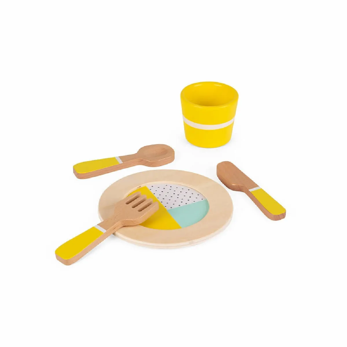 Dinette enfant - 4 assiettes, verres, couverts - Style nordique