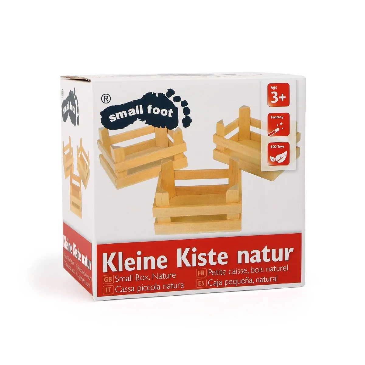 Lot de 3 petites caisses en bois, un jeu dimitation (marchand/marchande) de la marque Small Foot, Legler, réf 1808.