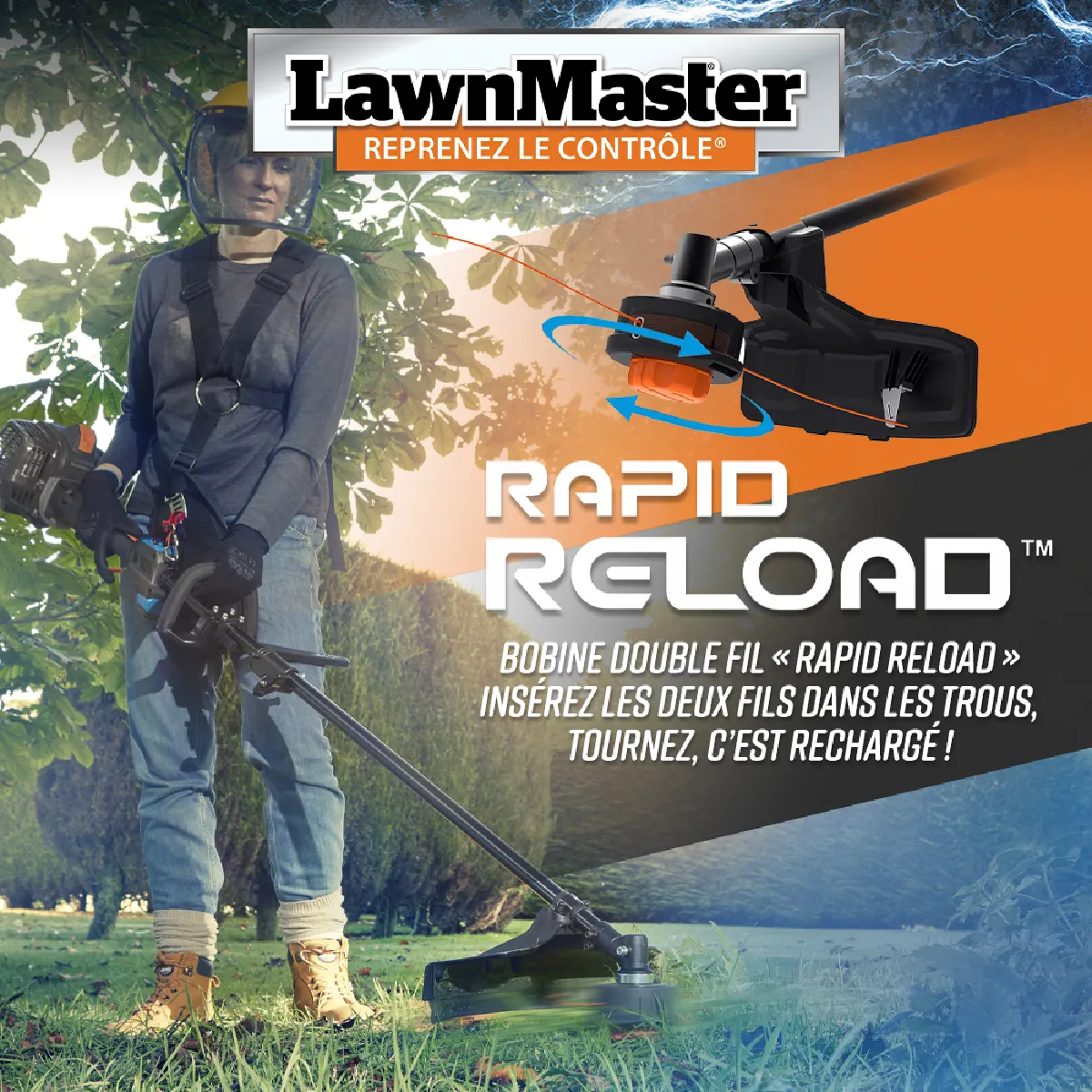 La bobine de fil est équipée du système Rapid reload (insérez les 2 fils dans les trous, tournez, c'est rechargé