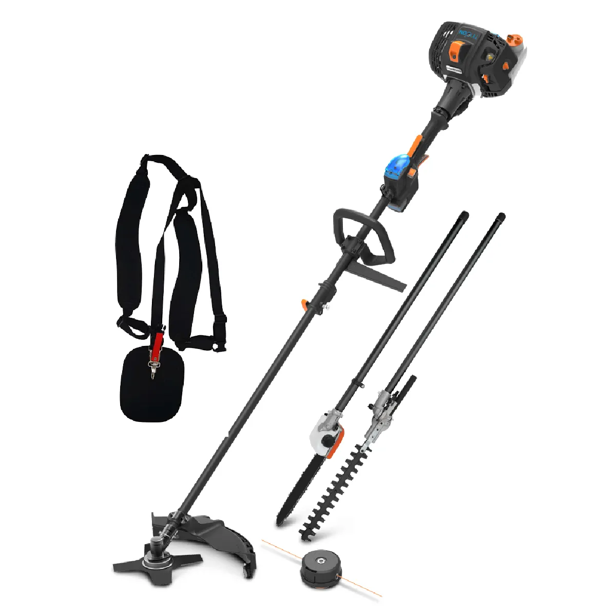 Débroussailleuse thermique 4 en 1 - Moteur 2 temps - Lame 4 dents 23 cm - Coupe-bordure 43 cm - Taille-haie - Tronçonneuse