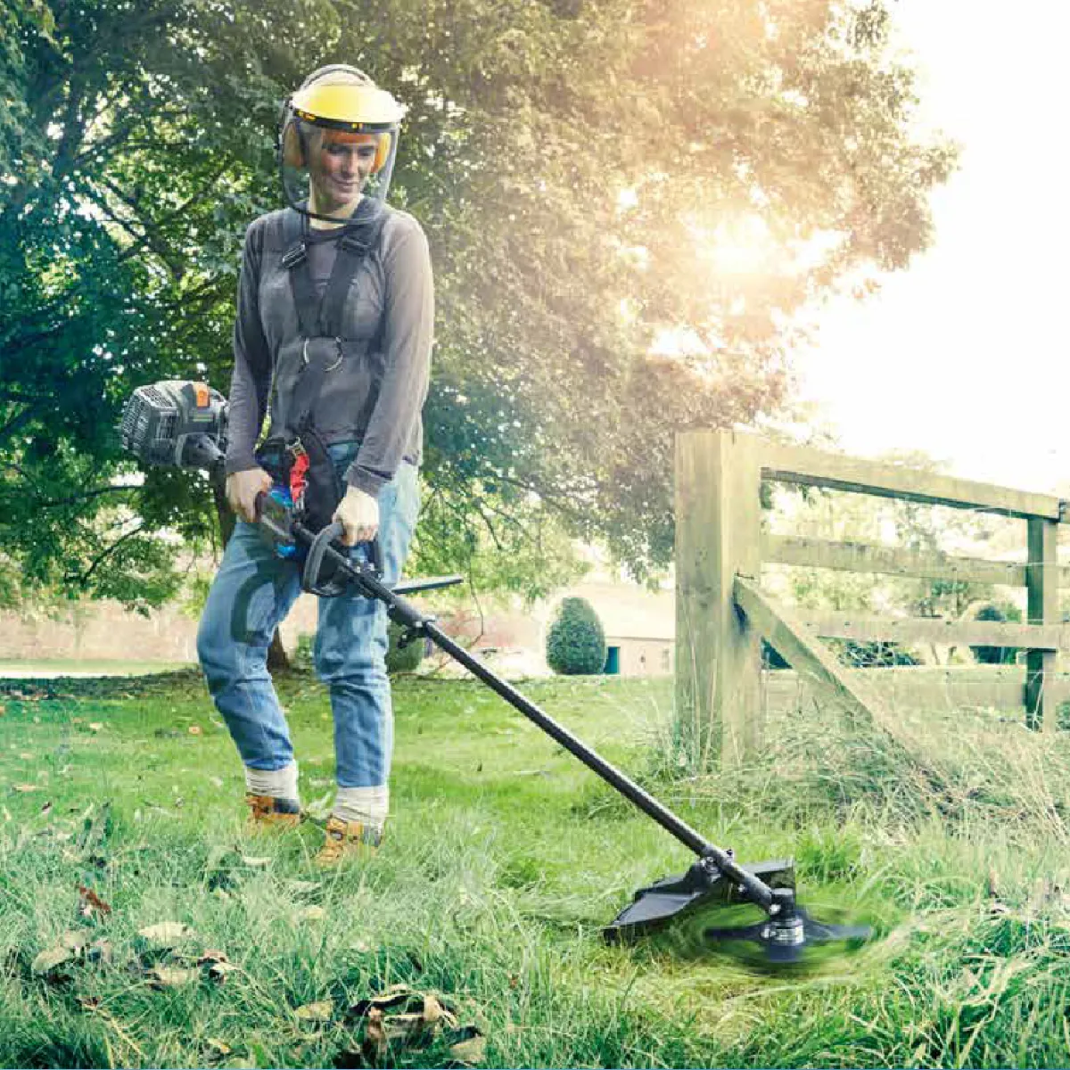Le moteur 2 temps de 26 cm³ offre une énergie régulière pour une coupe efficace des herbes hautes et des bordures. Avec 0,72 kW, l'outil est calibré pour entretenir massifs, allées et zones difficiles d'accès sans perte de régularité. La double configuration 2 en 1 permet d'alterner entre la bobine et la lame : 43 cm avec fil pour la vitesse sur les grandes surfaces, et 23 cm avec lame pour une précision accrue dans les secteurs denses. Le harnais double améliore l'équilibre et la tenue, limitant la fatigue lors des passages prolongés.