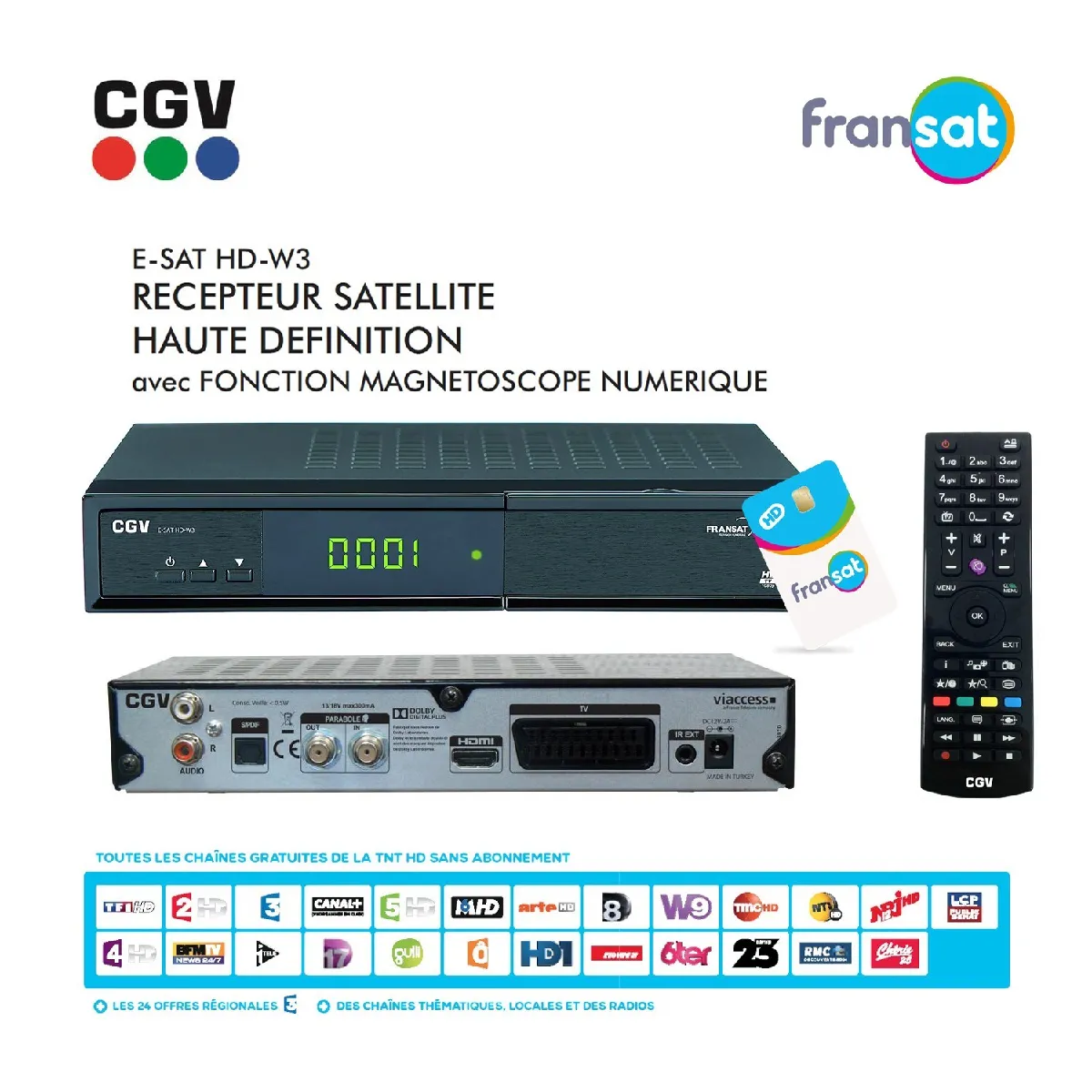 Récepteur Décodeur Enregistreur Satellite HD CGV E-SAT HD-W3 + Carte FRANSAT