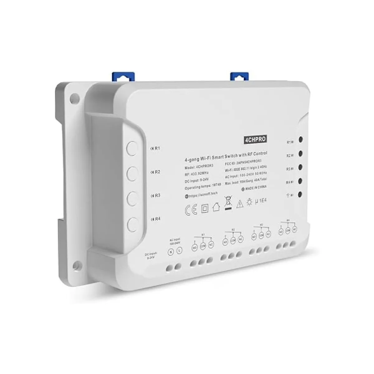 SONOFF 4CHPROR3 est un commutateur intelligent Wi-Fi à 4 sorties conçu pour vous donner la possibilité d'intégrer un contrôle intelligent dans une installation existante.