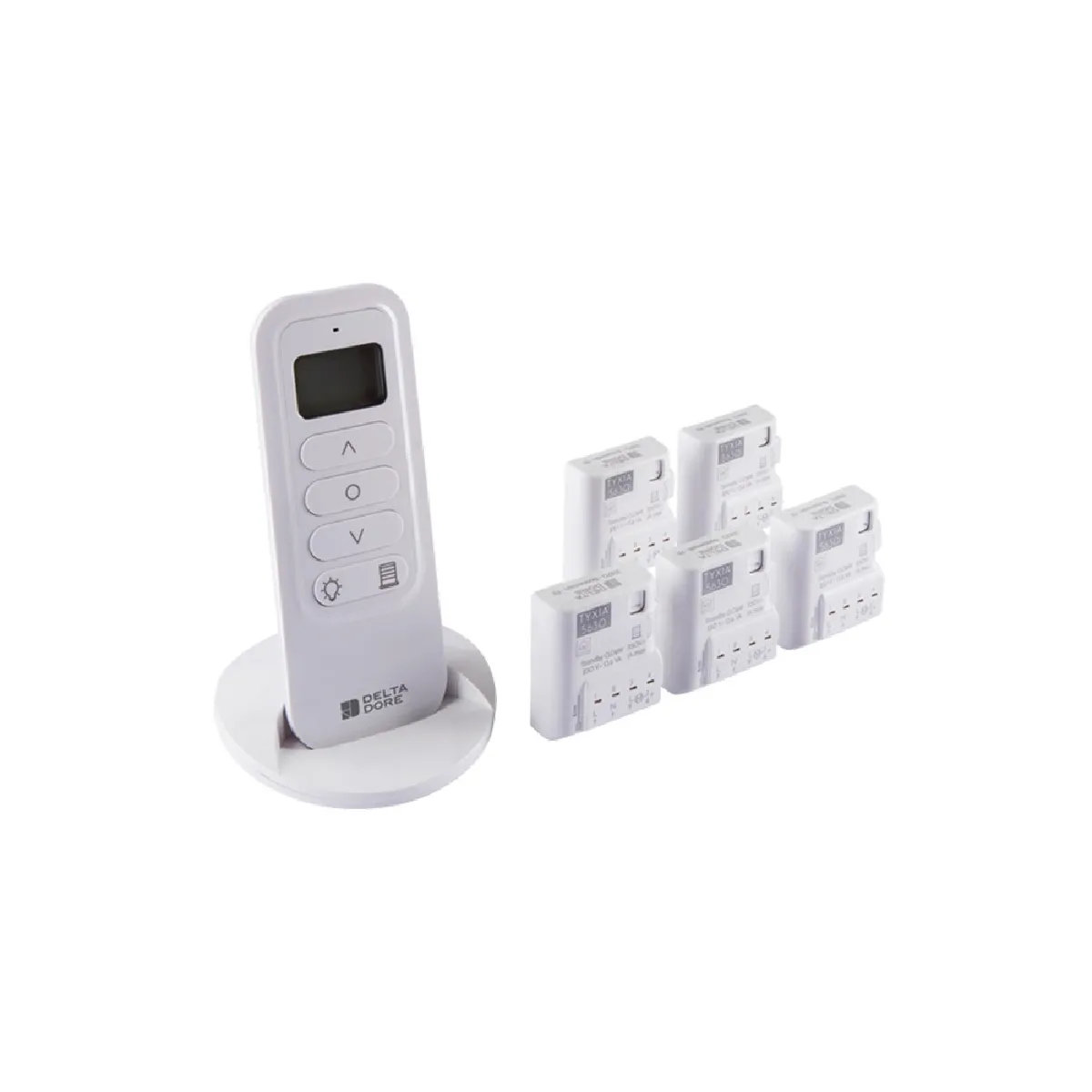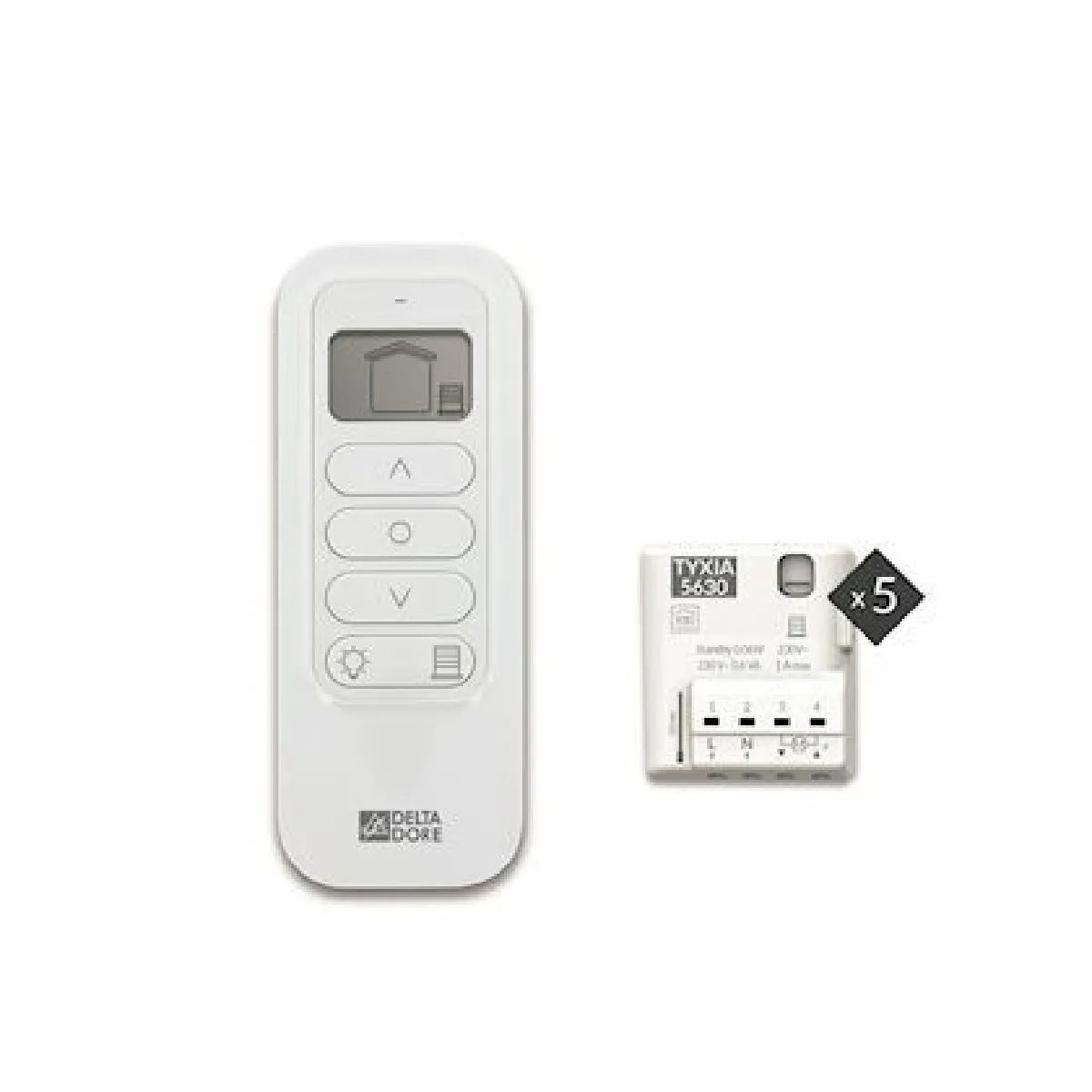 Pack pour centralisation de volets roulants - PACK TYXIA 541 - Delta DoreLe pack pour centralisation de volets roulants, référencé PACK TYXIA 541 est un dispositif qui allie à la fois innovation, fonctionnalité et praticité. Grâce à la télécommande TYXIA 1716 incluse dans le pack, cet outil vous permet de commander jusqu'à 16 volets roulants individuellement ou par groupe. Adapté pour une utilisation en intérieur, il fonctionne sur piles, dans une plage de températures allant de 0 °C à 55 °C.Quant aux 5 récepteurs TYXIA 5630, ils conviennent particulièrement pour une utilisation en intérieur. Il fonctionne sur secteur avec une portée radio allant de 100 à 300 mètres. Il peut être utilisé dans une plage de températures allant de -10°C à 40°C. Ce gadget offre également une fonctionnalité de sécurité très intéressante. Associé à un détecteur de fumée radio compatible, il permet l'ouverture automatique des volets roulants en cas de détection de fumée. Profitez également de la fonction optimisation solaire. En l'associant à une sonde d'ensoleillement et à un gestionnaire d'énergie compatible, il vous permet de maintenir une température de confort en toute saison en agissant sur la hauteur du volet roulant.Par ailleurs, vous pouvez commander vos volets roulants avec une indication du pourcentage de fermeture grâce à l'appli Tydom et la box maison connectée. La fonction astronomique quant à elle permet une ouverture et une fermeture automatique des volets roulants selon le lever et le coucher du soleil.Caractéristiques principales :5 Récepteur TYXIA 5630Type d'alimentation : secteurAlimentation : 230VLieu d'utilisation : intérieurPortée radio : 100 à 300 mTempérature de fonctionnement : -10 °C à 40 °CDimensions : 41 x 36 x 15 mm1 Télécommande TYXIA 1716Type d'alimentation : pilesPiles fournies : 1 bouton lithium CR2430Autonomie : 10 ansLieu d'utilisation : intérieurPortée radio : jusqu'à 300 mTempérature de fonctionnement : 0 °C à 55 °CDimensions : 121 x 46 x 11 mm