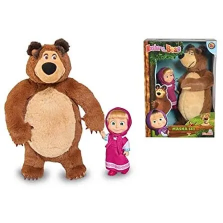 - Set 2 pièces : ours peluche 25 cm et Masha 12 cm