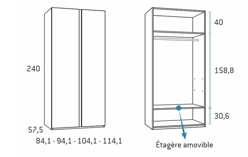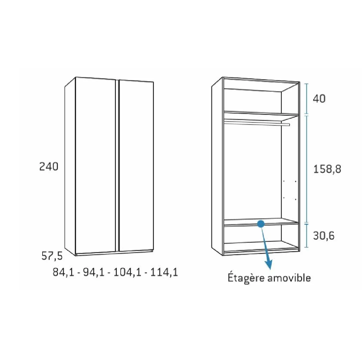 - Type : Armoire penderie 2 portes battantes, sans miroir