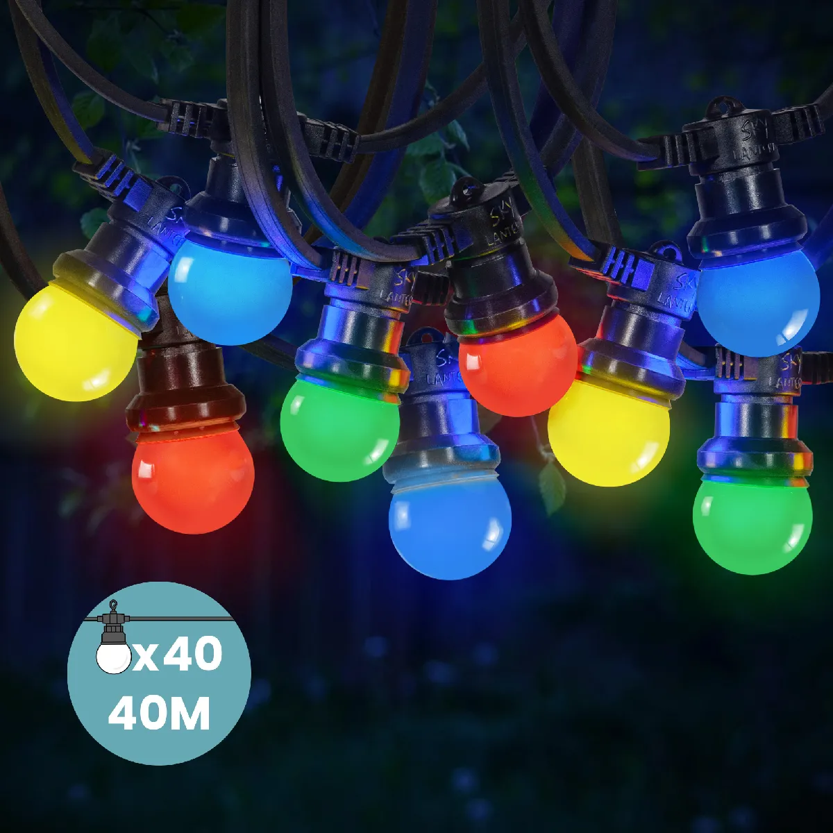 Guirlande guinguette extérieure - 40m - Multicolore - IP65 - Raccordable
