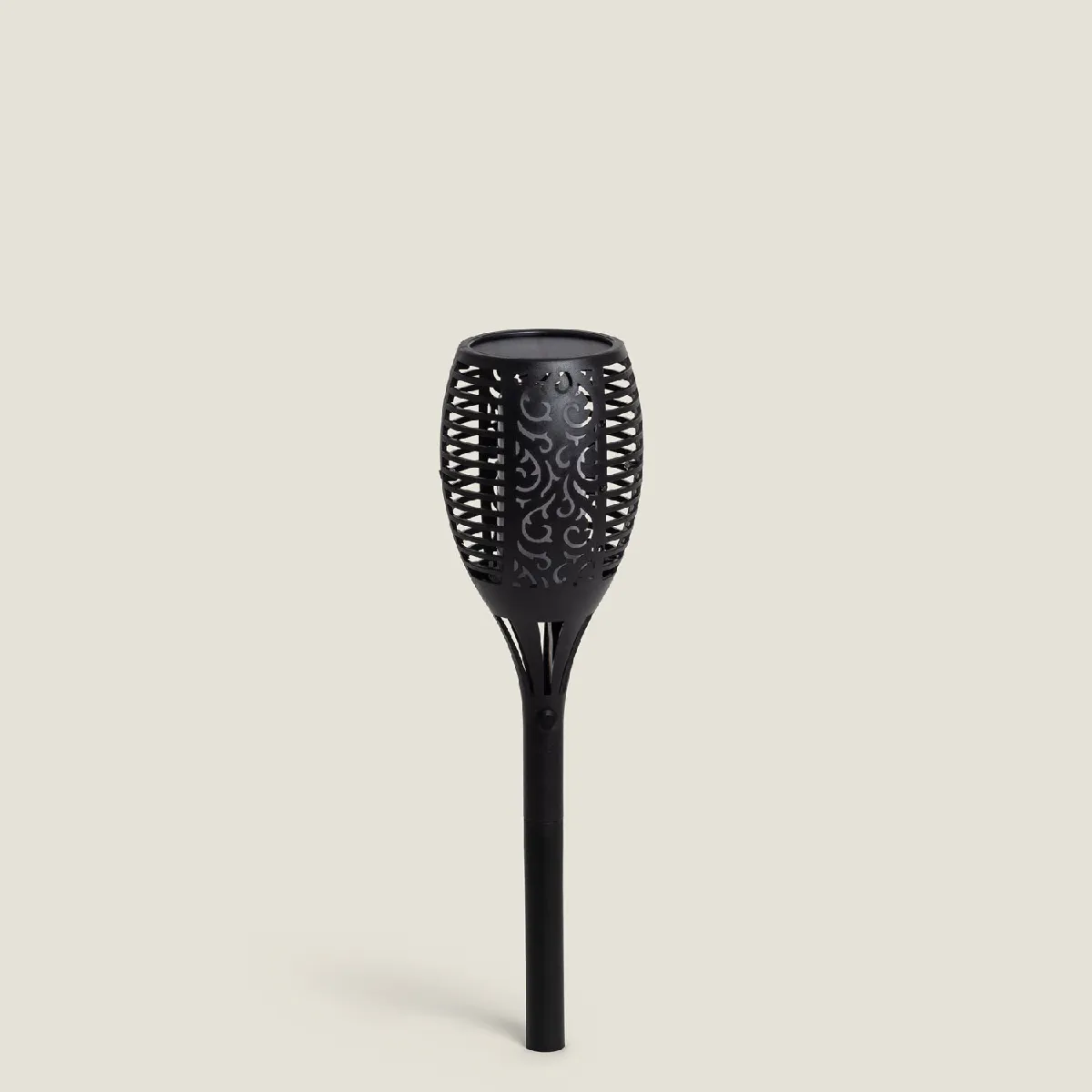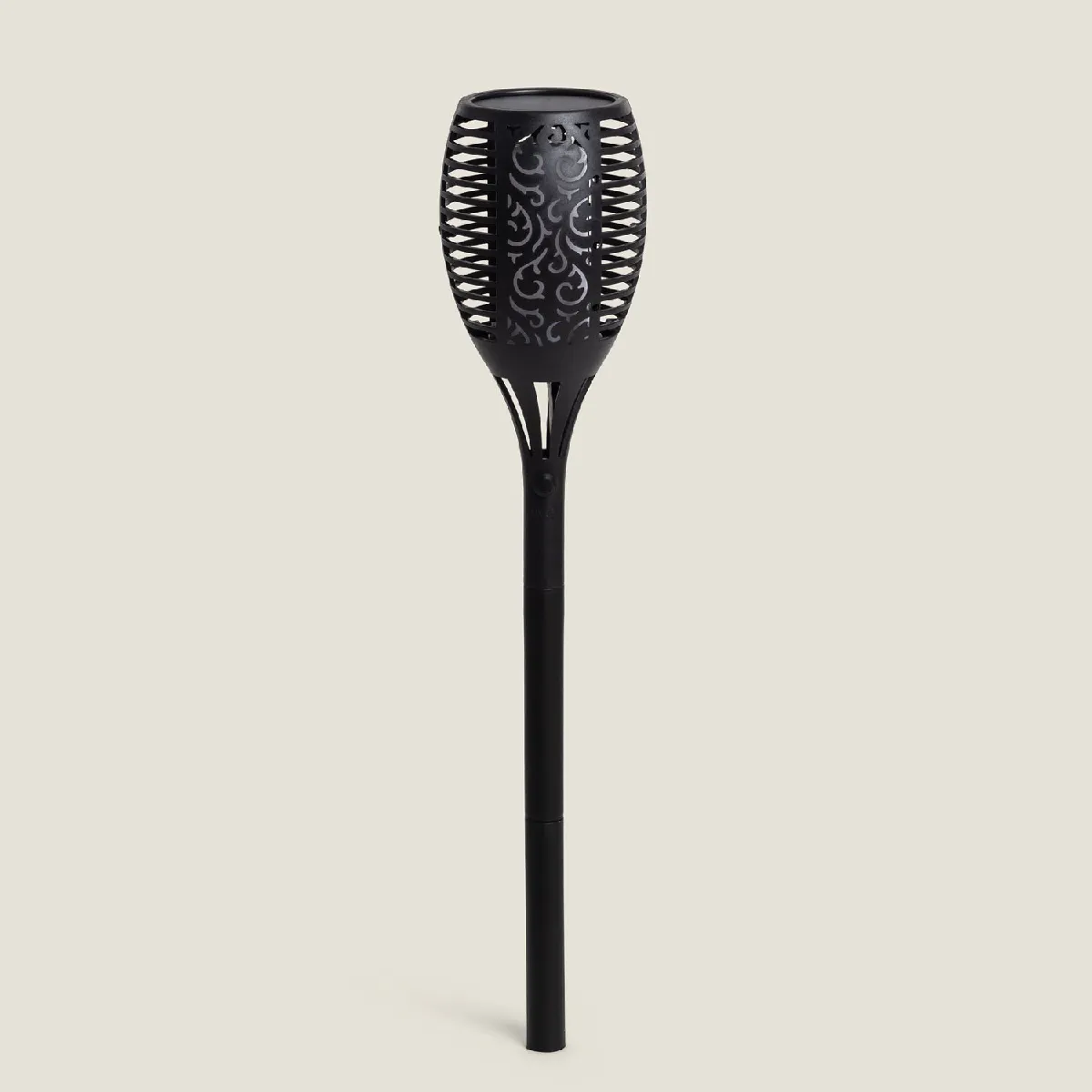 Son piquet permet de clouer la torche dans des jardins ou terrasses. Le panneau solaire est équipé d'un capteur lumineux afin que la torche puisse détecter s'il fait jour ou nuit. Si la torche est en position "On" quand la nuit tombe, son capteur intégré fera automatiquement allumer la torche.