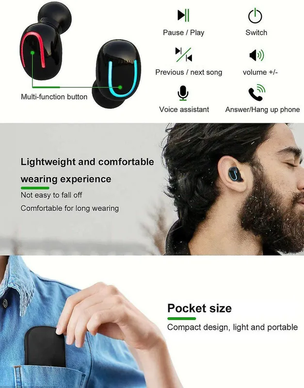 Pensés pour rester en place pendant l'effort, ces écouteurs intra-auriculaires sans fil associent connexion Bluetooth 5.0 stable et réduction de bruit pour des appels clairs. La conception IPX5 aide à résister à la sueur et aux éclaboussures, tandis que l'étui de charge magnétique facilite le rangement et la remise en énergie au quotidien. Avec une télécommande intégrée et contrôle du volume, vous gérez musique et appels sans sortir le téléphone. Trois tailles d'embouts en silicone assurent un ajustement confortable. L'autonomie annoncée atteint 4 heures en communication, avec jusqu'à 80 heures en veille.