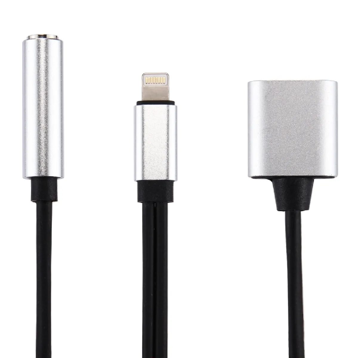 Adaptateur argent pour iPhone X / 8 et 8 Plus / 7 7 Plus / 6 6 Plus et 6 Plus 10cm Lightning Femelle et Jack 3,5 mm Audio à Lightning Mâle Câble d'Adaptateur de Chargeur, Support iOS 10.3.1,