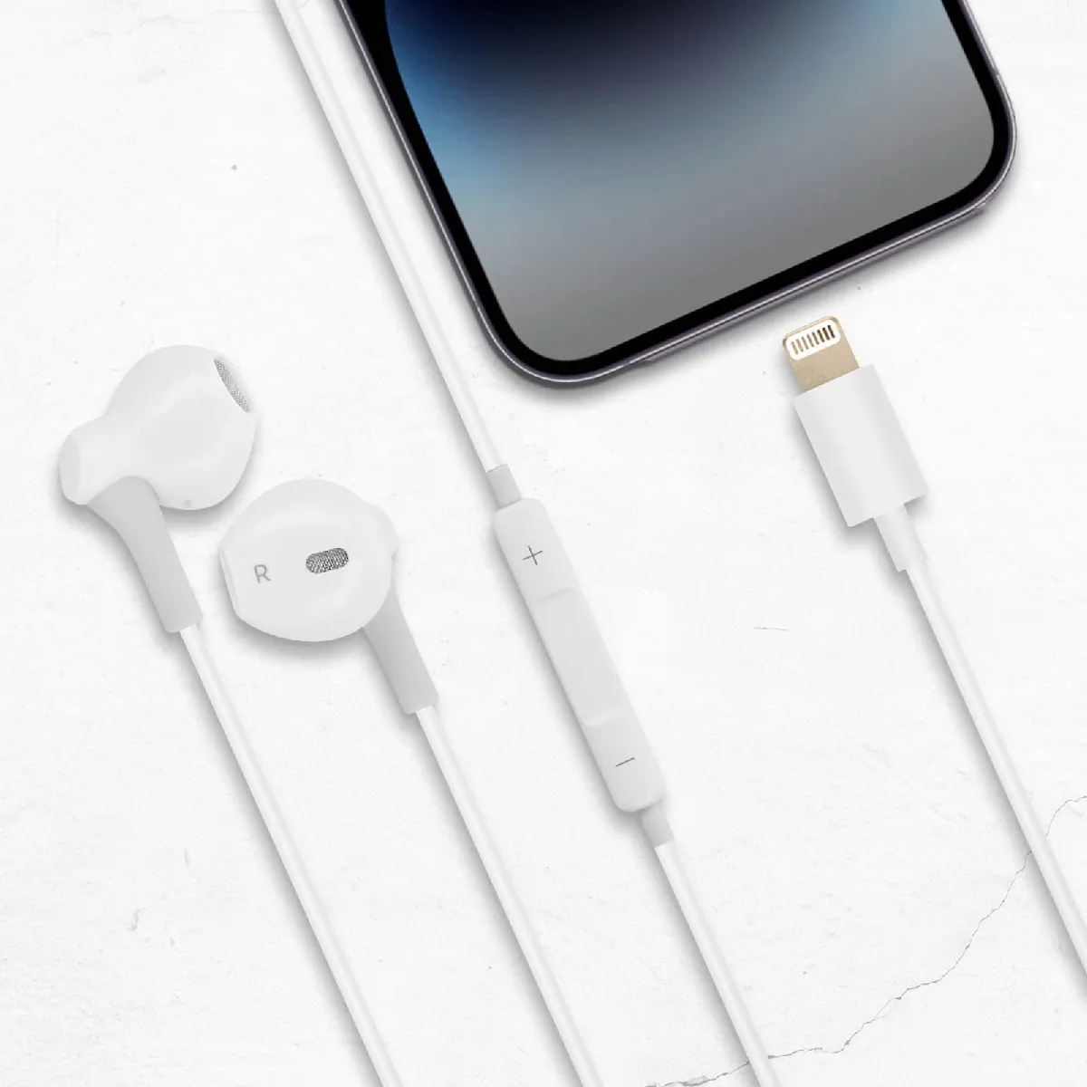 Écouteurs Kit piéton Lightning blanc, proposés par la marque Moxie pour profiter de toute votre musique et gérer vos appels simplement et confortablement