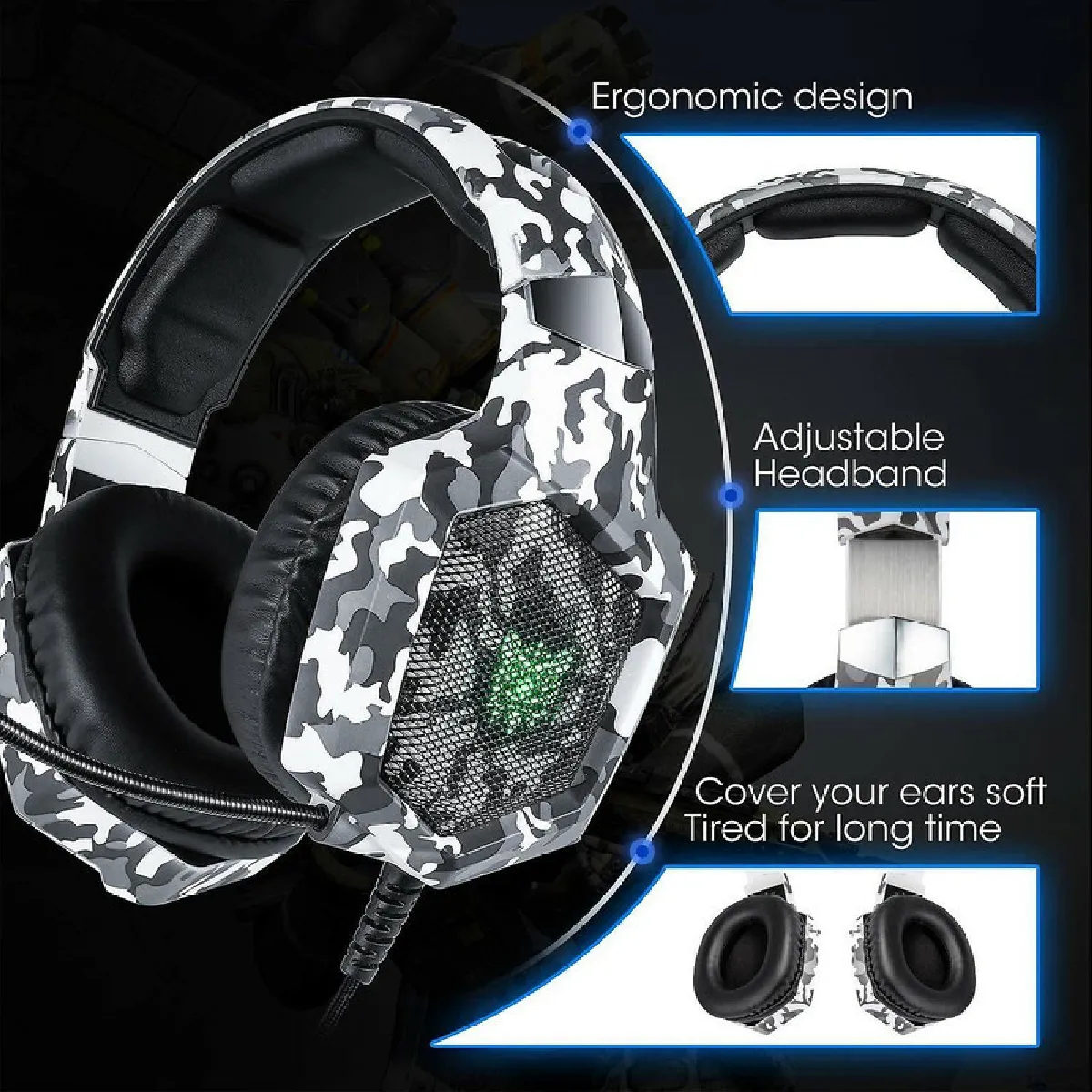 Casque de jeu filaire Chrono K8 Camouflage