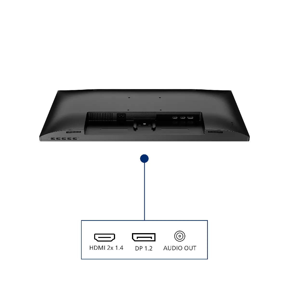 La connectique se concentre sur l'essentiel avec 1 entrée HDMI pour une mise en route rapide. Aucun port DisplayPort, USB ou RJ45 n'est présent, ce qui simplifie la configuration et évite les branchements superflus. L'écran est non tactile et non incurvé, pour une surface plane familière et précise au pointeur. Il n'intègre pas de hautparleurs ni de webcam, laissant le choix des périphériques audio et vidéo. L'ensemble propose un affichage clair avec confort visuel intégré pour une utilisation polyvalente à la maison comme au bureau.