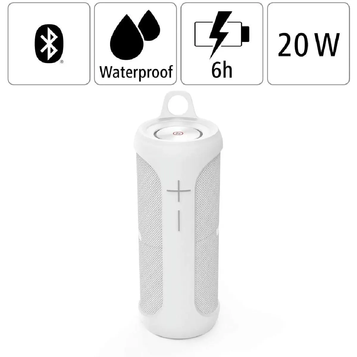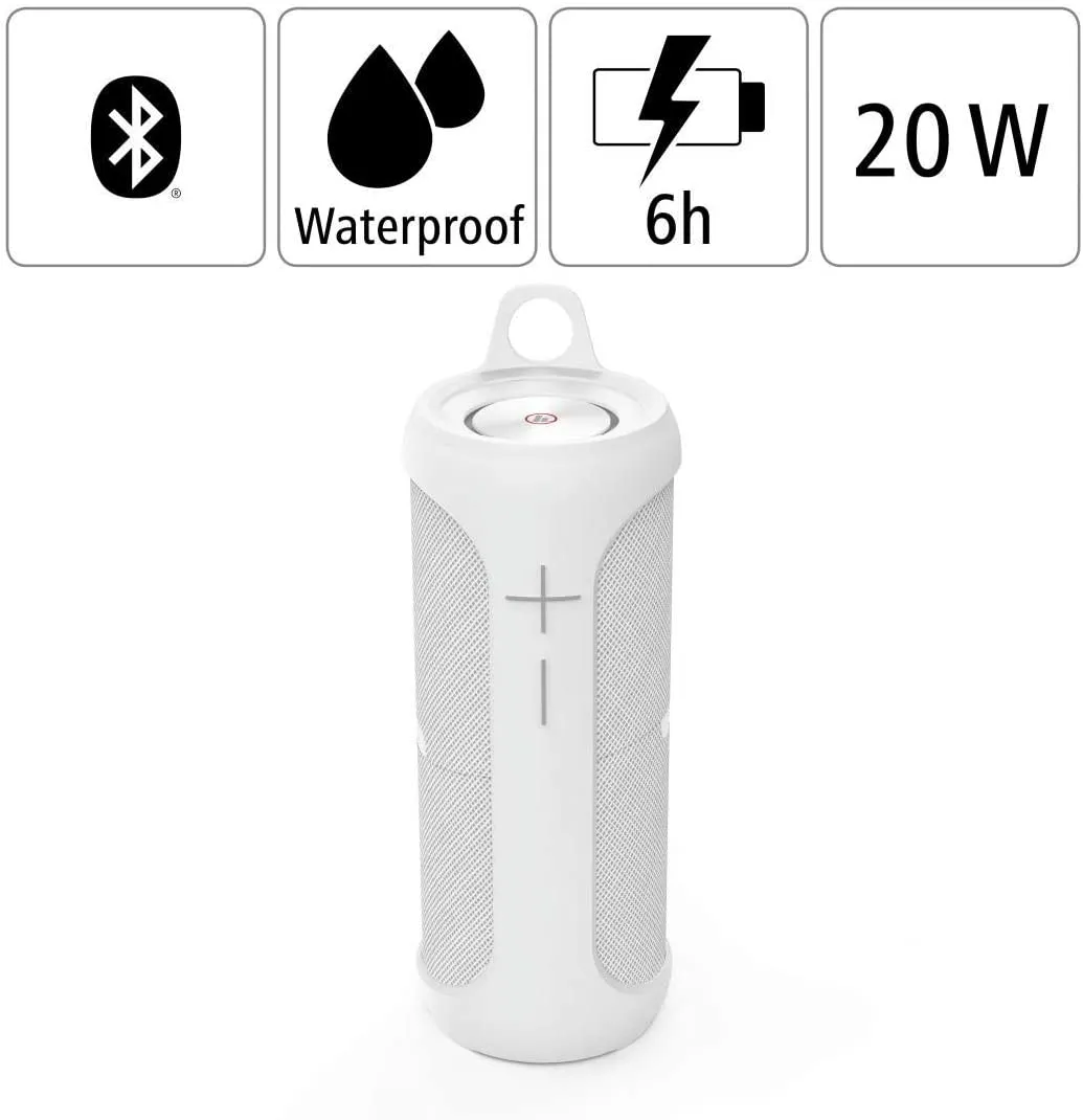 Pensée pour l'extérieur, l'enceinte assure une résistance IPX7 aux projections, à la pluie et aux brèves immersions. La capacité à flotter rend l'écoute possible à la piscine ou dans le bain. La batterie intégrée assure jusqu'à 6 heures d'écoute continue, et le câble USBC inclus simplifie la recharge. L'appareil est actif dès l'appairage et peut être utilisé avec un téléphone, une tablette ou un ordinateur portable pour profiter de listes de lecture et de podcasts en déplacement.