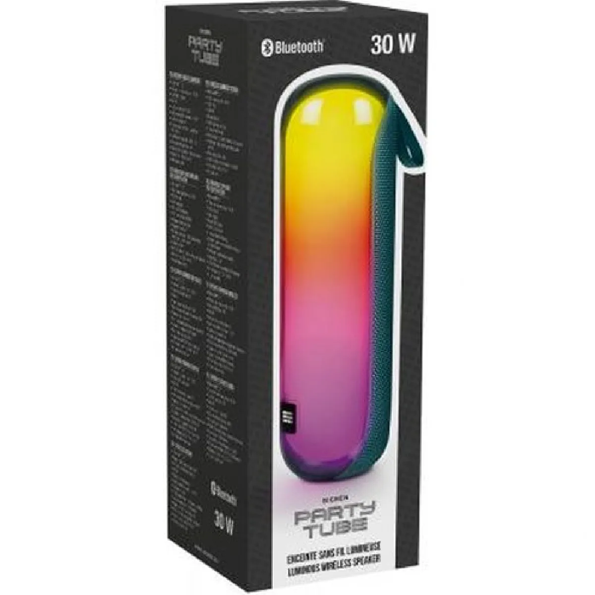 La PARTY TUBE combine des effets lumineux à 180° synchronisés avec vos musiques et une diffusion sonore énergique pour créer une ambiance immédiate. La gestion des sources est flexible grâce à la prise en charge des cartes micro SD, de l'hôte USB et de la mémoire flash, en complément du Bluetooth 5.3 et de l'entrée AUX. La boucle de suspension permet un accrochage simple et un transport rapide, pratique pour changer d'espace sans interrompre l'écoute.