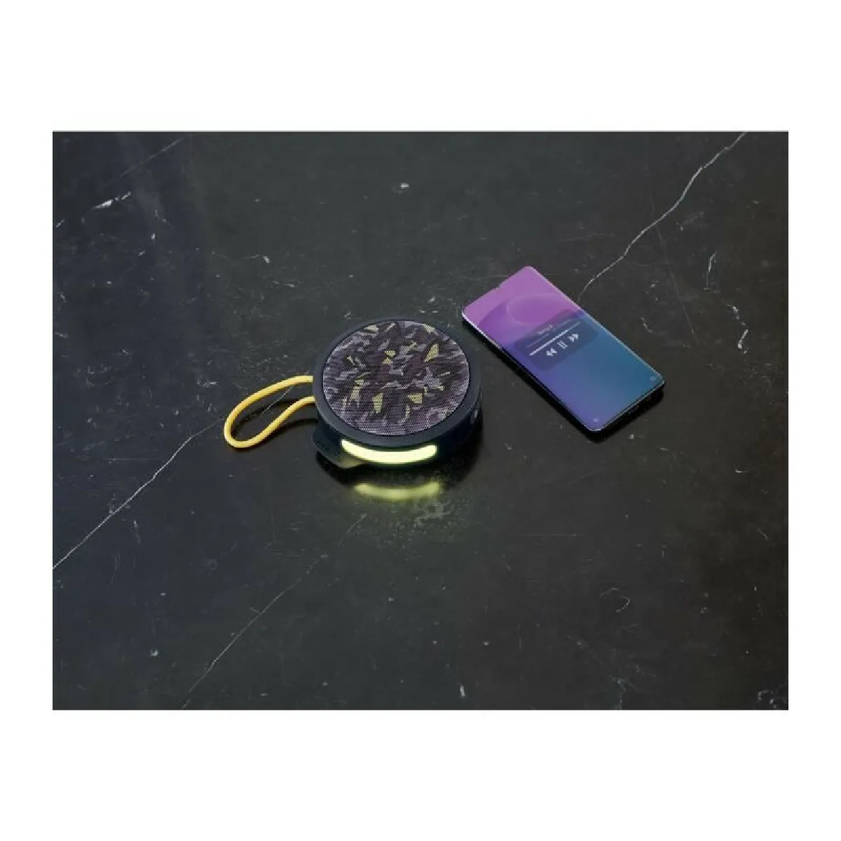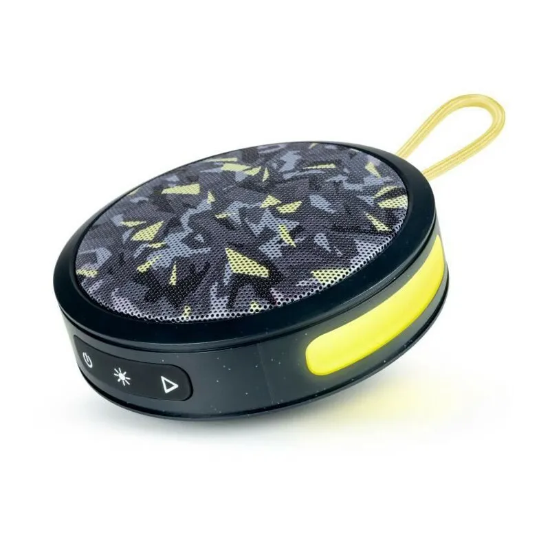 Pensée pour les moments conviviaux, l'enceinte bénéficie d'un jumelage avec une autre unité compatible pour un son plus ample. L'autonomie de 4 h s'accorde à des écoutes courtes, et se recharge ensuite via un chargeur non inclus. La protection IP54 favorise l'usage en extérieur léger sans craindre la poussière ou de petites éclaboussures. La finition jaune et l'aspect camouflage ajoutent une esthétique distinctive, tandis que la prise en main reste simple grâce à des commandes directes pour la lecture et le volume.
