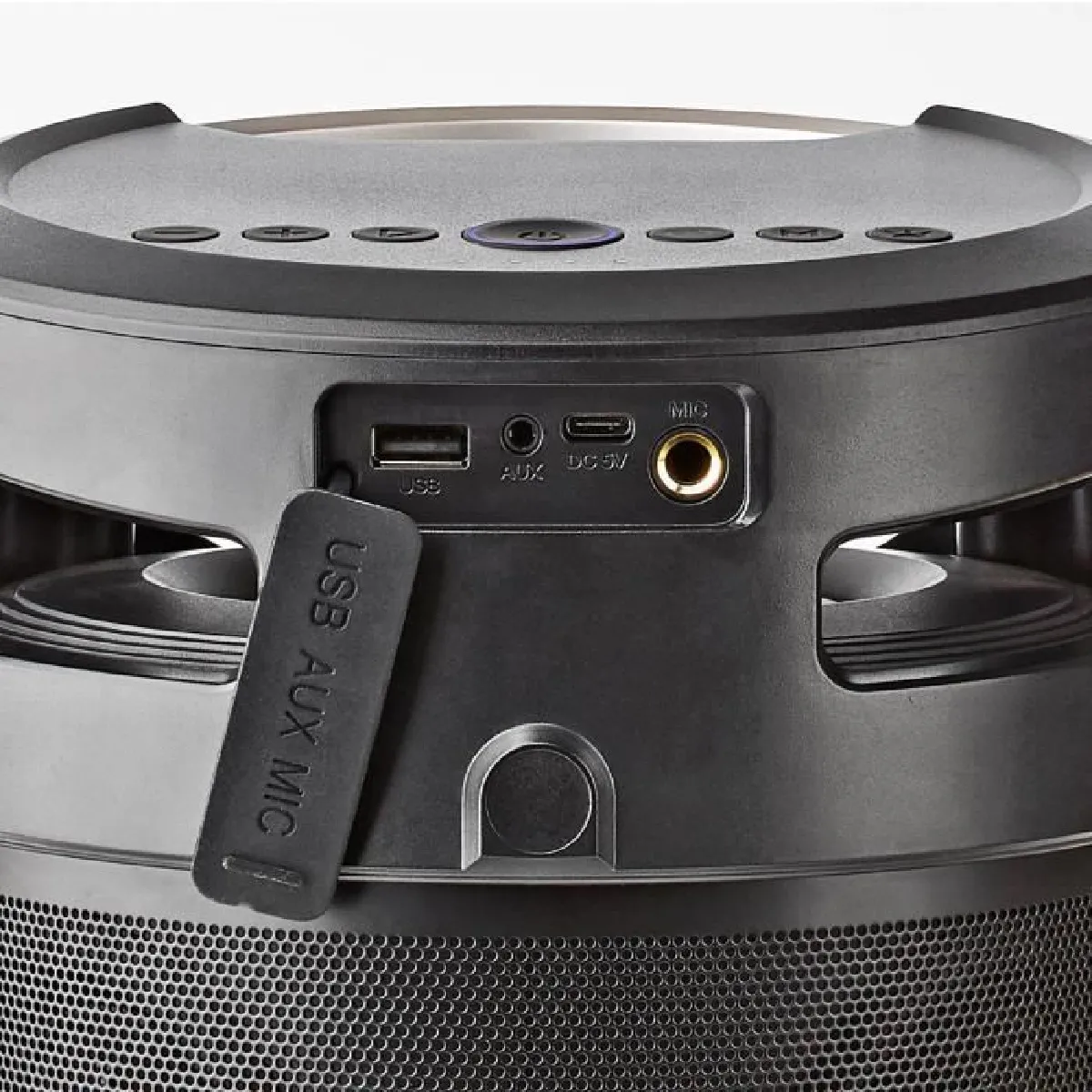- Puissance maximale annoncée : 150 W, adaptée à sonoriser des moments festifs de proximité