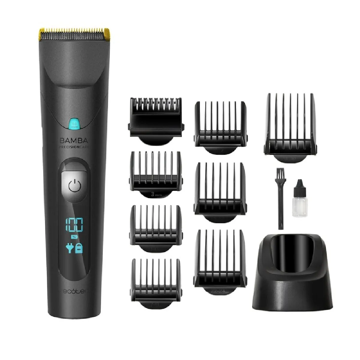 Tondeuse cheveux électrique - Lames inox titane - IPX6 - Écran LED - 8 peignes - Utilisation avec ou sans fil