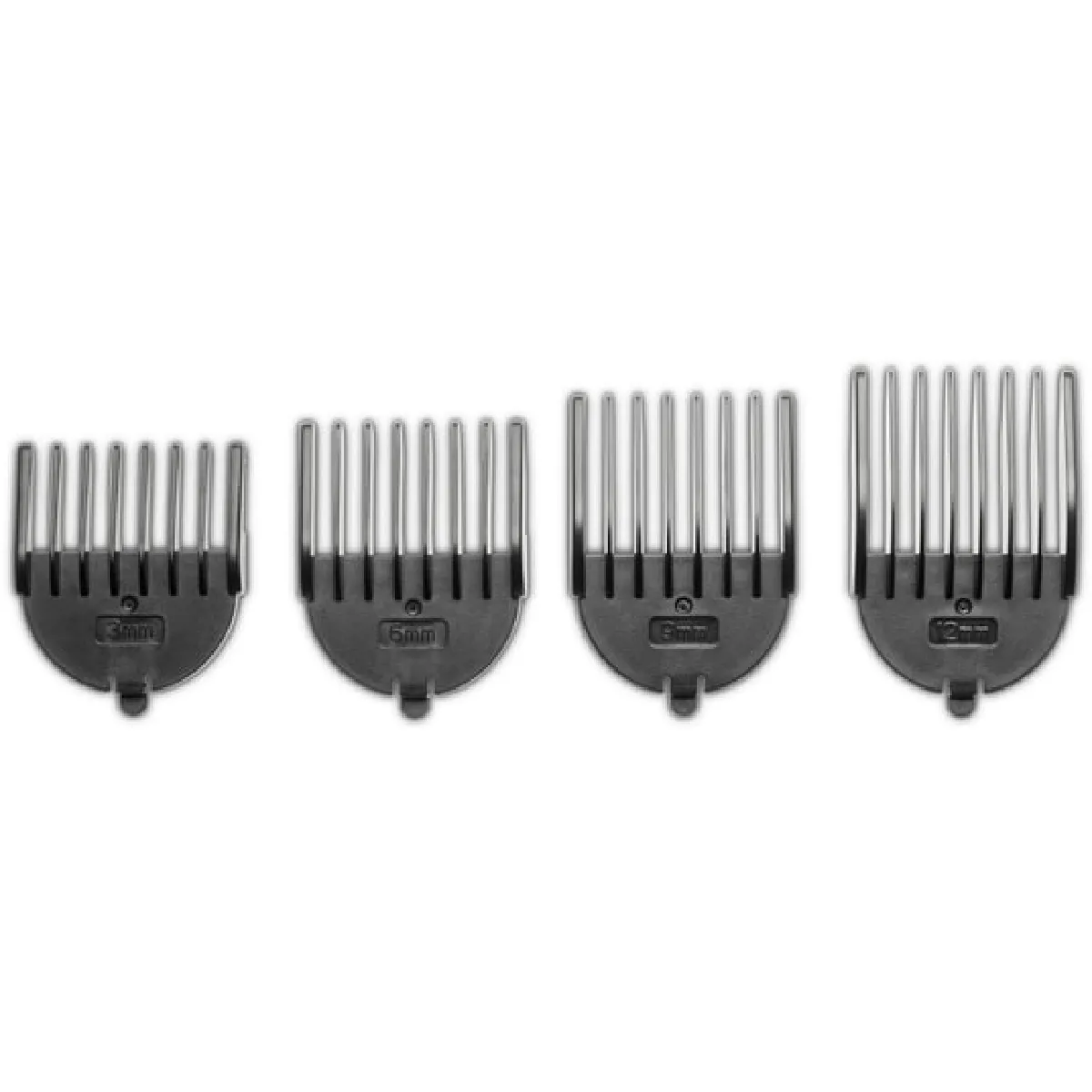 - Cheveux : 4 peignes fixes 3, 6, 9, 12 mm