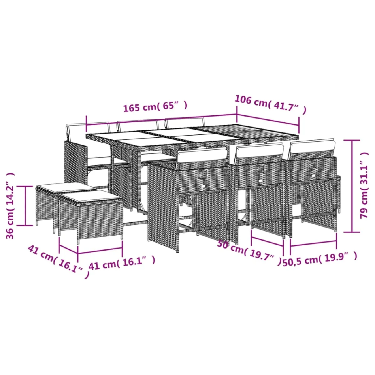 Commentaire vendeur : vidaXL Ensemble à manger de jardin et coussins 11 pcs beige poly rotin