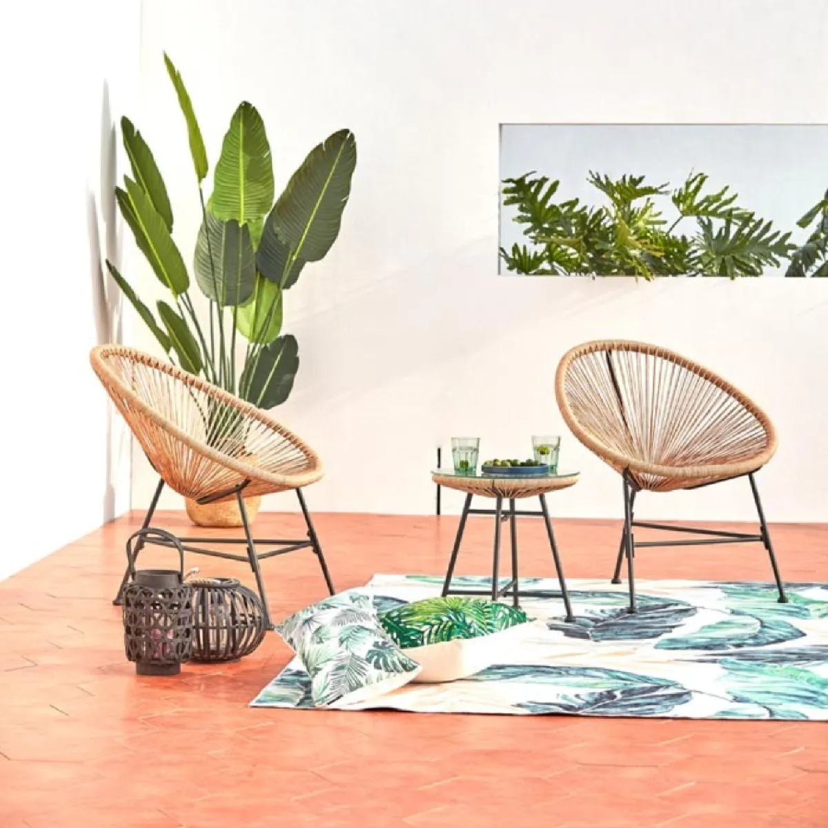Mettez du style dans votre jardin avec cet ensemble de jardin Acapulco, toujours au top de la tendance ! Sa couleur beige naturel rappelle fortement le rotin et lui donne davantage d'authenticite ! Les assises sont composees de cordes en polyethylène, une matière très resistante aux intemperies et qui offre une assise très confortable. Ce salon de jardin s'adapte aux petits endroits cosys et ira parfaitement sur votre terrasse ou sur votre balcon. Très tendance, il se mariera sans aucun doute avec une decoration bohème ou encore urban jungle si vous aimez les plantes vertes !