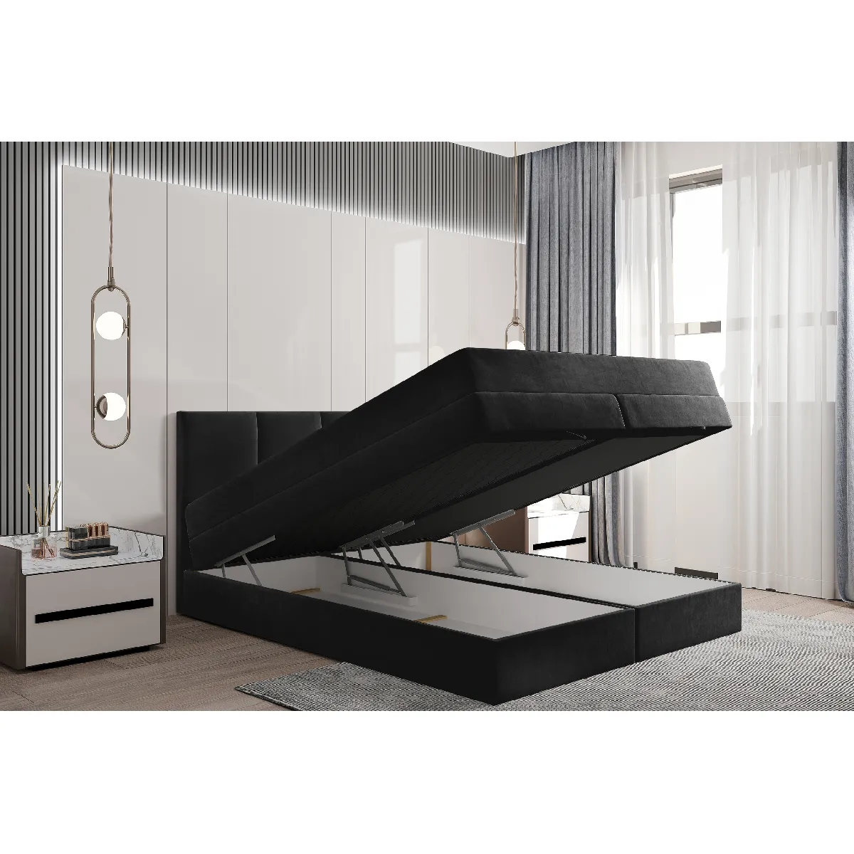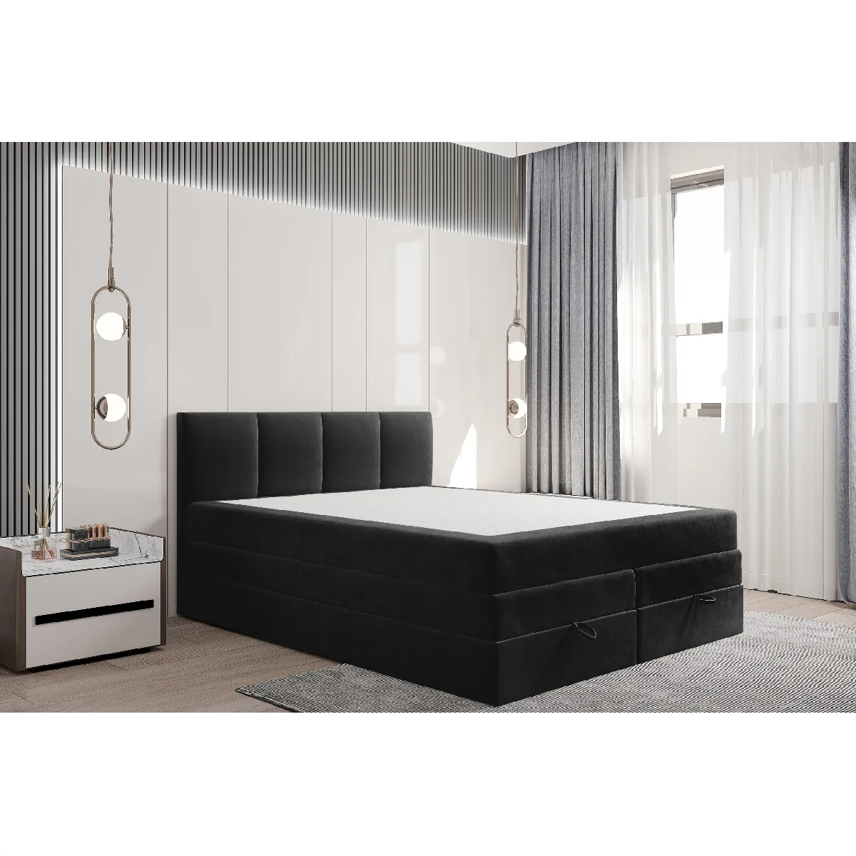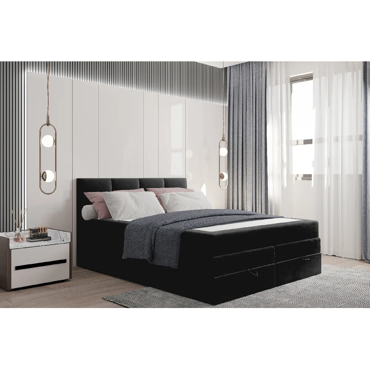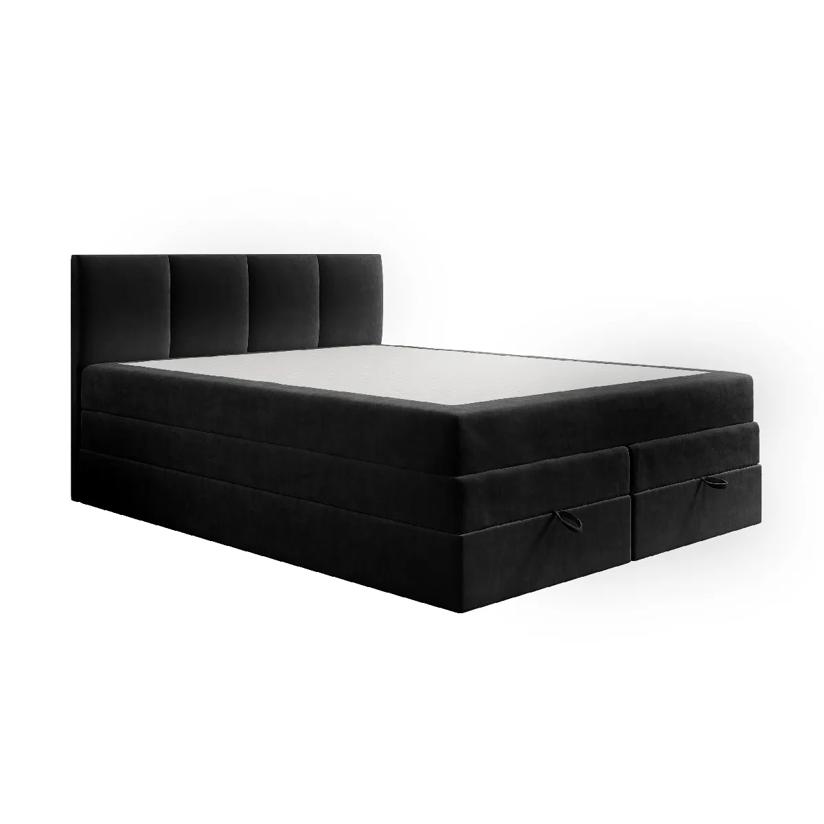 Lit adulte ressorts ensachés - Rangement intégré - Velours noir