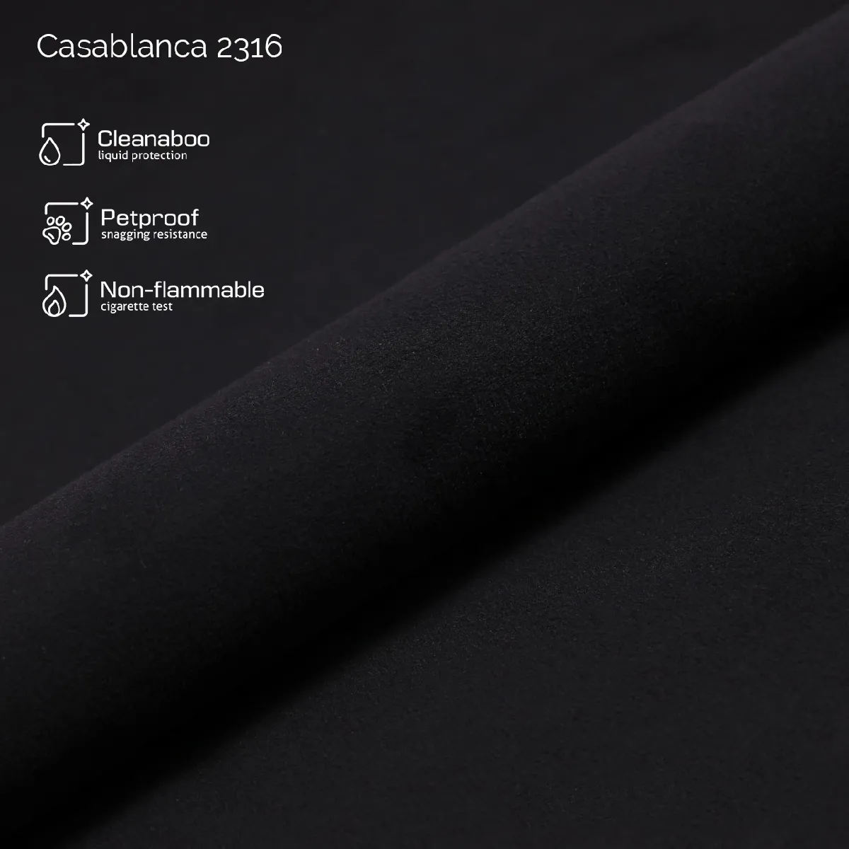 Caractéristiques principales : 2 grands coffres de rangement pour la literie. 2 matelas bonnell mi-dur H3 intégrés dans le cadre en bois sur lesquels est posé le matelas ressorts ensachés moelleux Pocket Energy Springs. Les vérins à ressort pour faciliter le levage. Cadre solide en bois massif. La tête de lit rembourrée par le tissu anti-tâches Casablanca. Le tissu se caractérise par une surface agréable et une résistance à l'abrasion. Il a des propriétés hydrofuges (Water Blocked), ce qui rend les meubles beaucoup plus faciles à nettoyer. Composition : 100 % polyester.