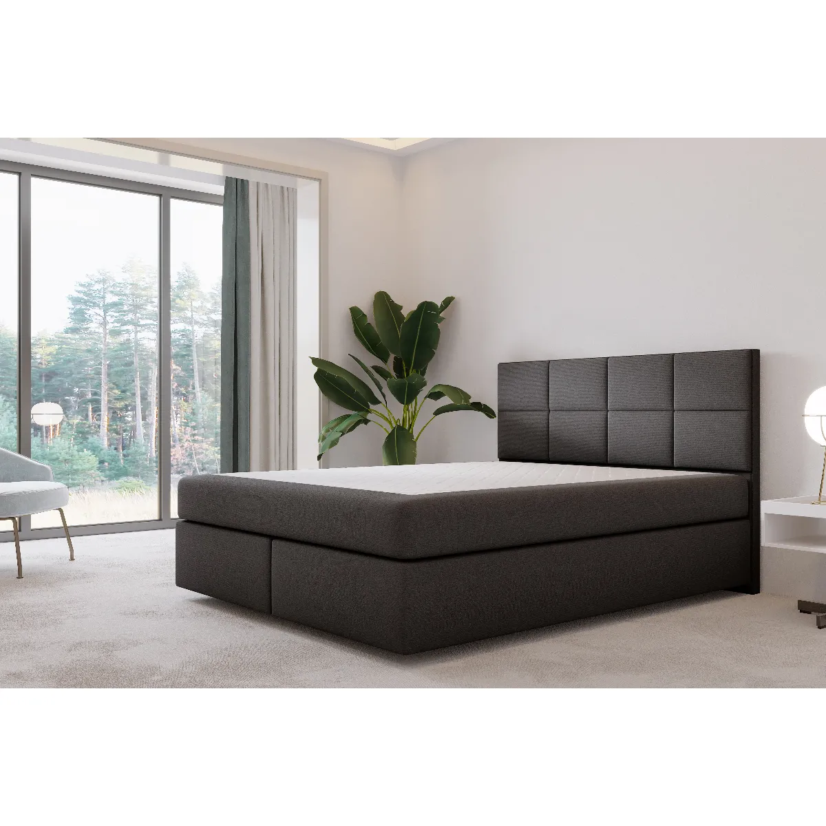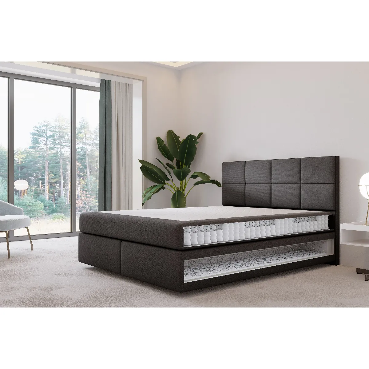 Lit adulte 180x200 cm MALLORCA – lit suspendu avec matelas ressorts ensachés et matelas bonnell – tissu velours - Dormez en lévitation et gagnez en sensation d'espace grâce à un lit suspendu. Lit adulte rembourré MALLORCA c’est un nouveau lit suspendu avec double matelas de haut de gamme intégrés dans le cadre en bois. Suspendez votre lit dans le vide et flottez avec lui, léger et aérien, à contre-courant de la gravité ! Pour ne pas rompre avec la logique minimaliste et épurée d’une grande chambre contemporaine, on mise sur un lit surélevé sur les pieds en bois de hêtre de seulement 7 centimètres du sol. C’est discret mais efficace. Car cela allège une structure centrale aux lignes géométriques et rigoureuses, qui aurait pu peser de manière négative sur l’ensemble de la pièce si elle n’avait pas été mise en lévitation. Le base du lit de 30 cm est composé d’un matelas bonnell sur lequel nous avons posé un matelas à ressorts ensachés de 18 cm avec 9 zones de confort H3 Pocket Energy Spring. Cela nous donne un excellent couchage à la hauteur de 55 cm. Le matelas à ressorts ensachés n’est pas fixé au lit – il est uniquement placé sur le lit, mais il ne bouge pas grâce à la finition en tissu antidérapant de la housse. Les matelas Pocket sont une garantie de confort et de durabilité. Cette solution permet d'obtenir de nombreux points d'appui sur la surface et assure une parfaite adaptation au corps. Ce groupe de matelas est le plus populaire sur le marché européen. Matelas mi-dur H3. Largeur au choix: 140 / 160 / 180 / 200 cm. Tissu velours anti-taches : Casablanca qui se caractérise par une surface agréable et une résistance à l'abrasion. Il a des propriétés hydrofuges (Water Blocked), ce qui rend les meubles beaucoup plus faciles à nettoyer. Composition : 100 % polyester.