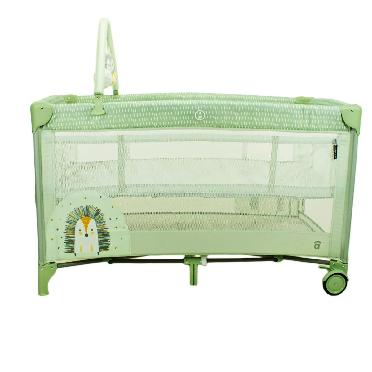 Lit de voyage duo - 2 roues avec frein - Insert amovible - Barre de jouets - Pour bébé jusqu'à 15 kg