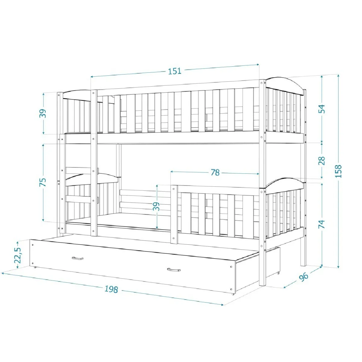 - Dimensions du lit : Longueur : 198cm, Largeur : 96cm, Hauteur : 158cm
