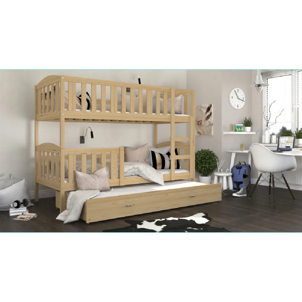 Kids Literie Lit Superposé 3 Places Teo 90x190 Pin Livré avec sommiers, tiroir et matelas en mousse de 7cm |