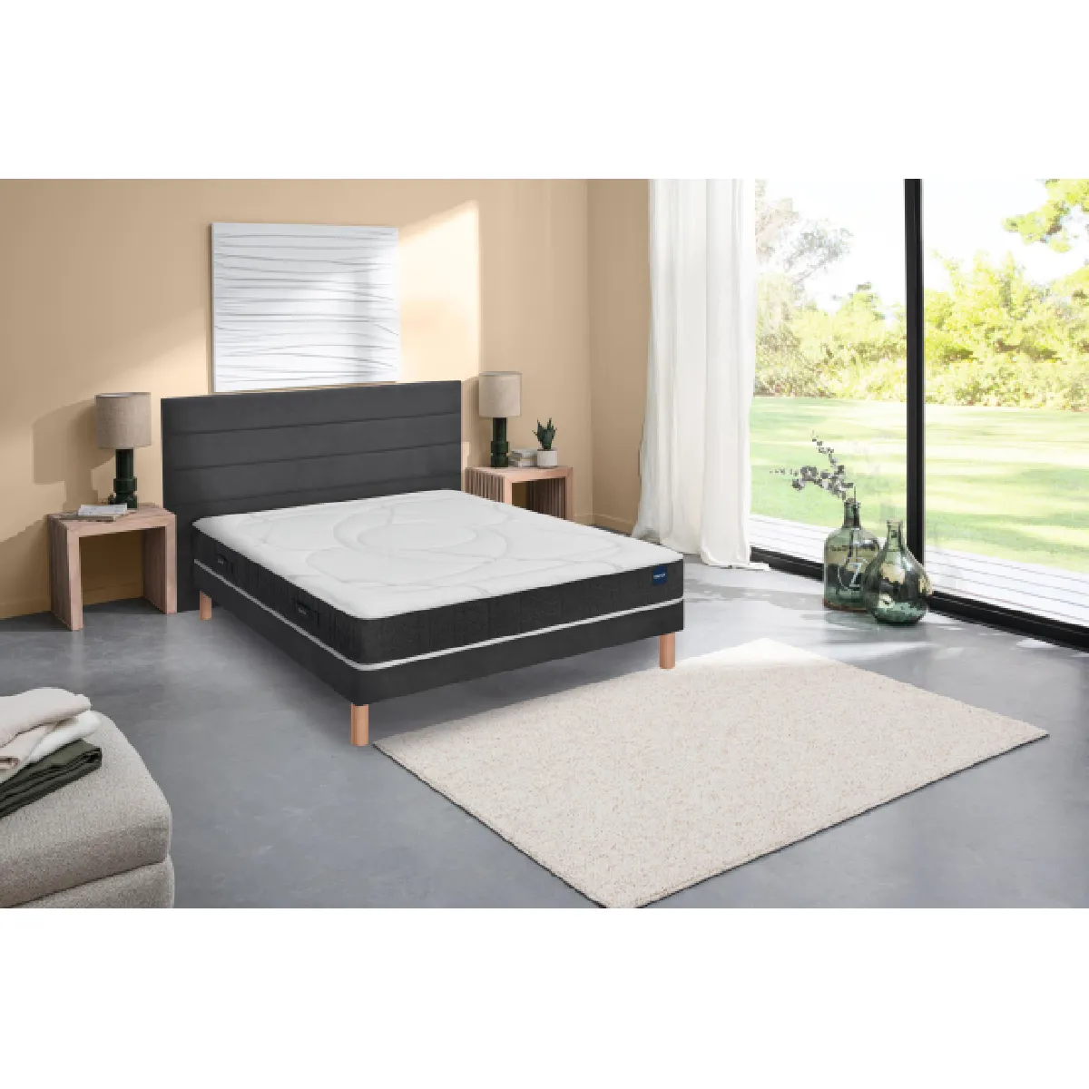 Sommier : Sommier Bultex Mediano - 15 cm - Lattes multiplis - 3 Zones de Confort - Coutil Stretch 100% polyester - Plateau micro-ventilé et anti-dérapant - Pieds inclus - Velours Gris Fumé